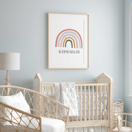 Indeed Allah is Watching Over You Children's Pink Rainbow Islamic Wall Art Print