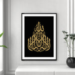 Black & Gold Shahadha Arabic Calligraphy Kalimah Kalma Islamic Wall Art Print