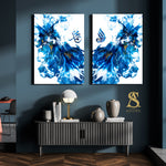 Set of 2 Blue And White Printed Stretched Canvas' Allah & Muhammad Arabic Calligraphy Islamic Wall Art Fluid Paint