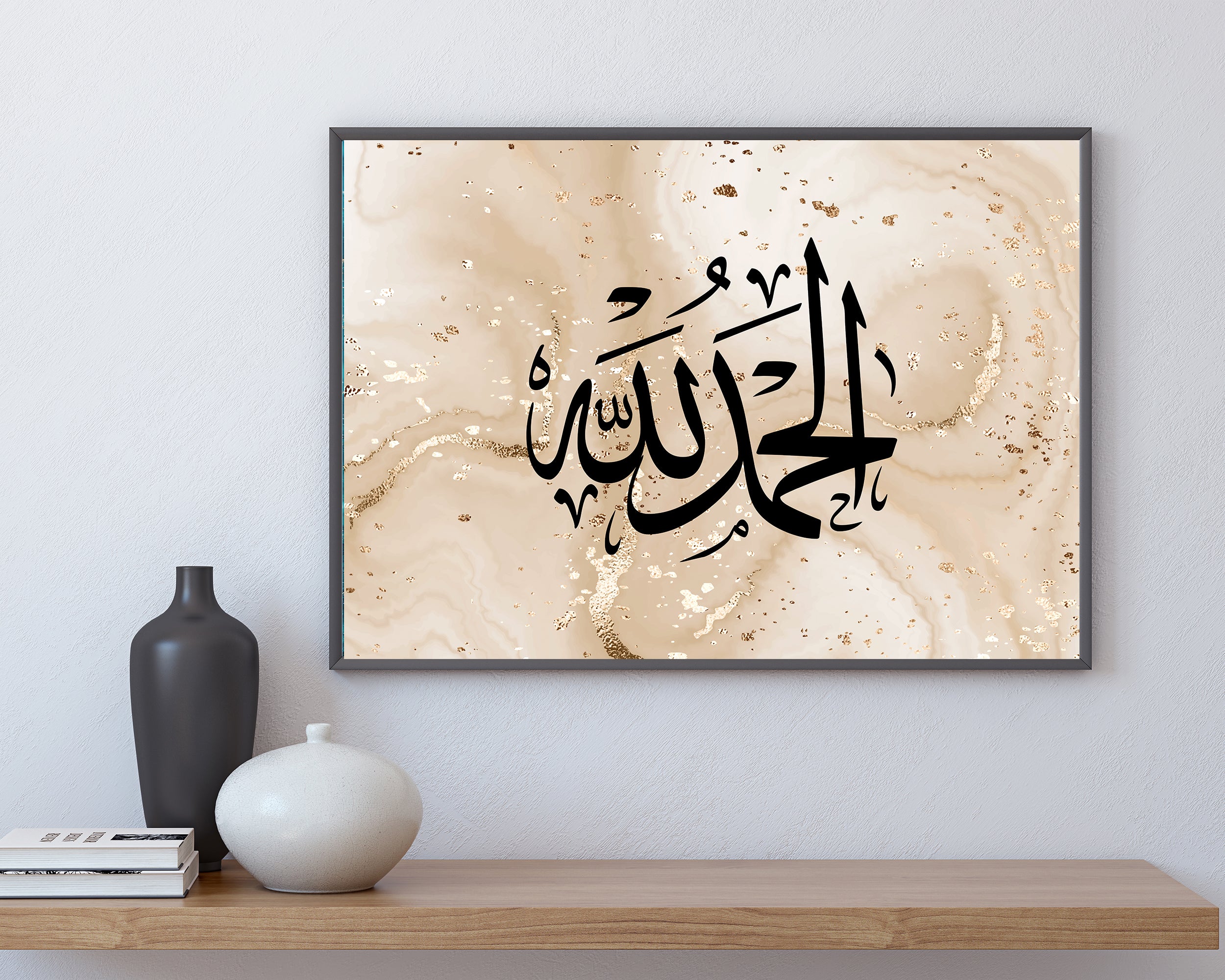 Beige & Gold Alhamdulillah Arabic Calligraphy Islamic Wall Art Islamic Art Print