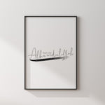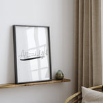 Black & Grey End With Alhamdulillah Letter Alif Abstract Islamic Wall Art Print Monochrome Ombre