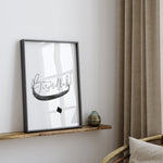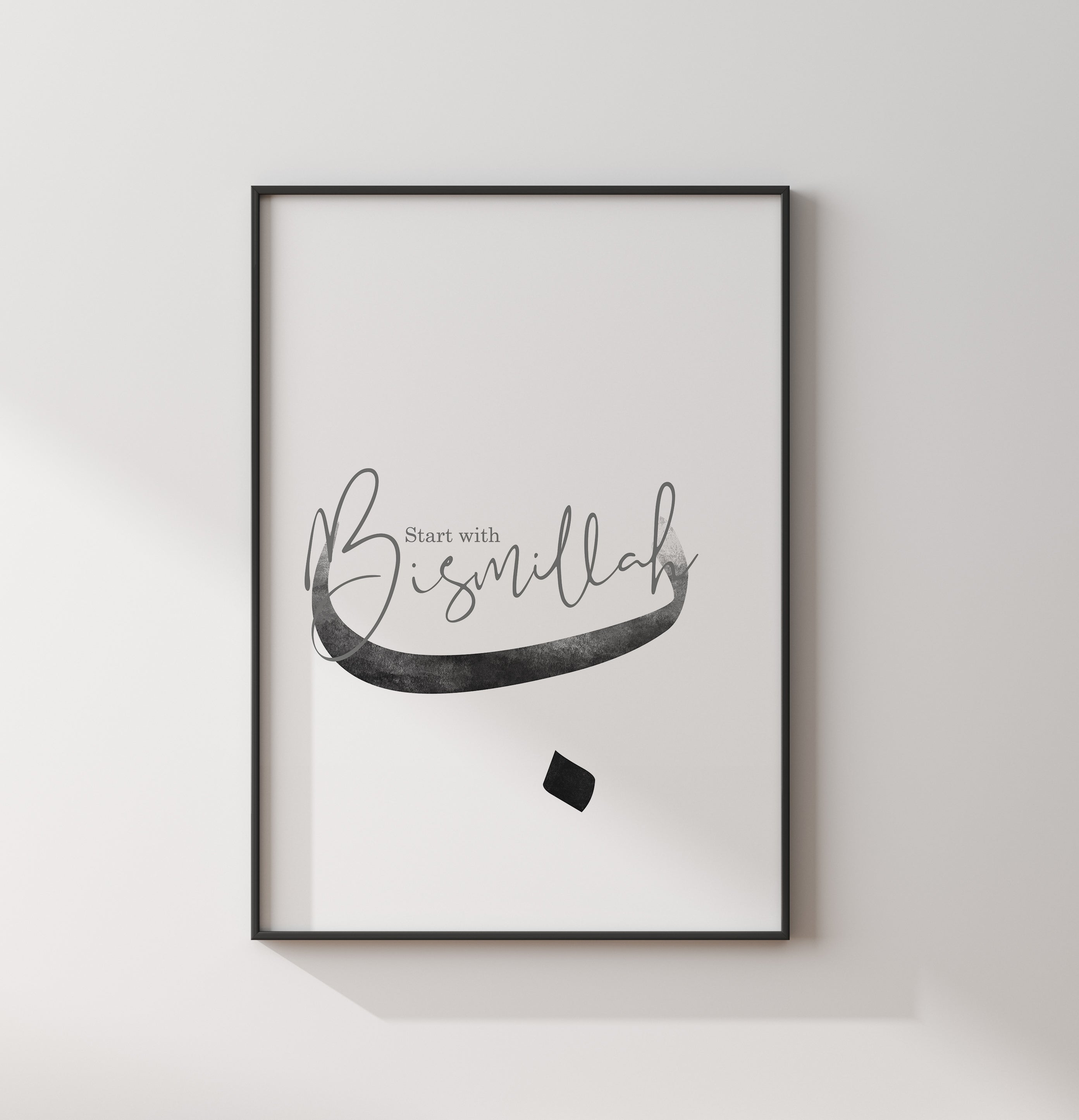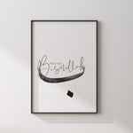 Black & Grey Start With Bismillah Letter Ba Abstract Islamic Wall Art Print Monochrome Ombre