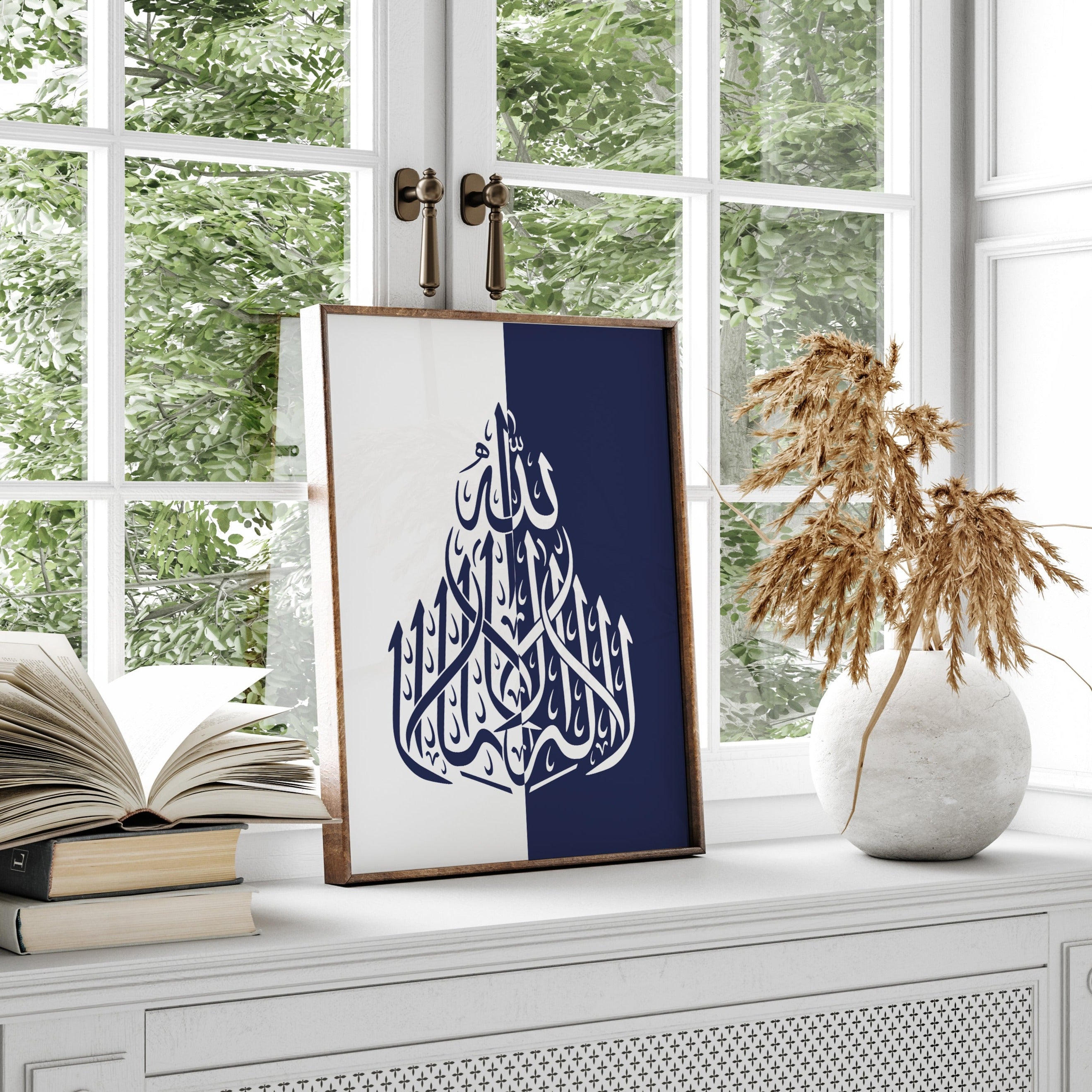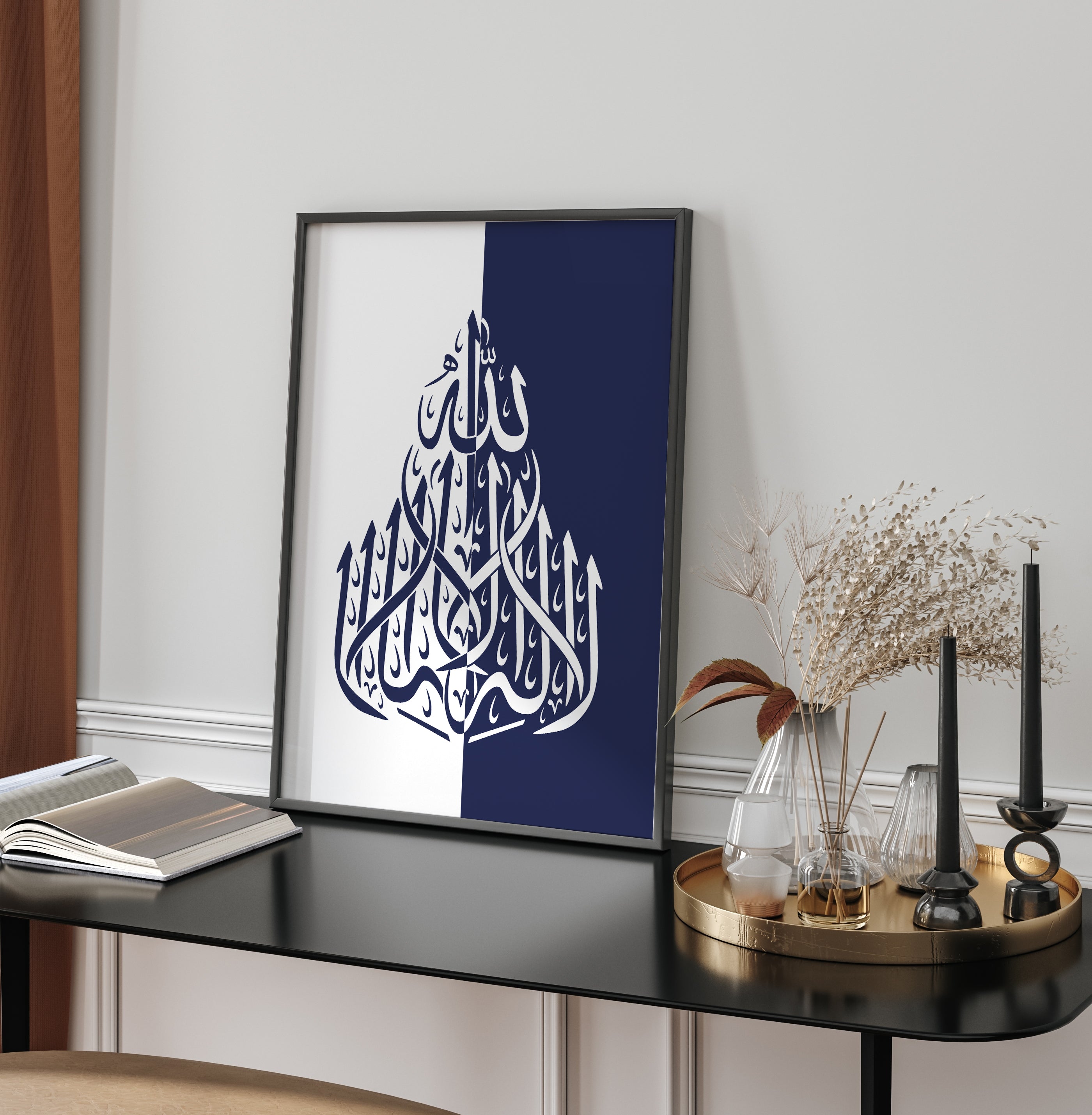 Navy Blue & White Lailaha illallah Arabic Calligraphy Modern Islamic Wall Art Print