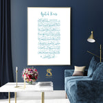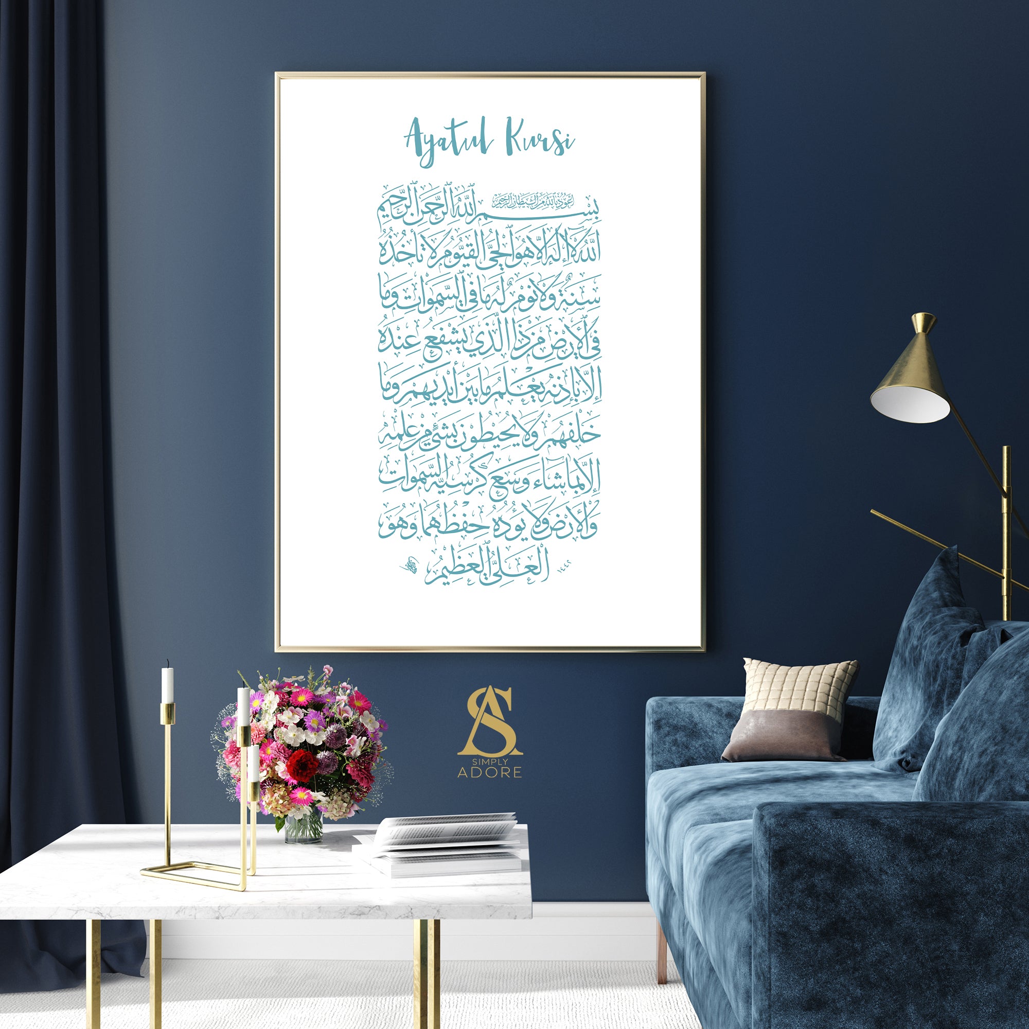 Blue & White Ayatul Kursi Watercolor Islamic Wall Art Print With Arabic Calligraphy Islamic Print