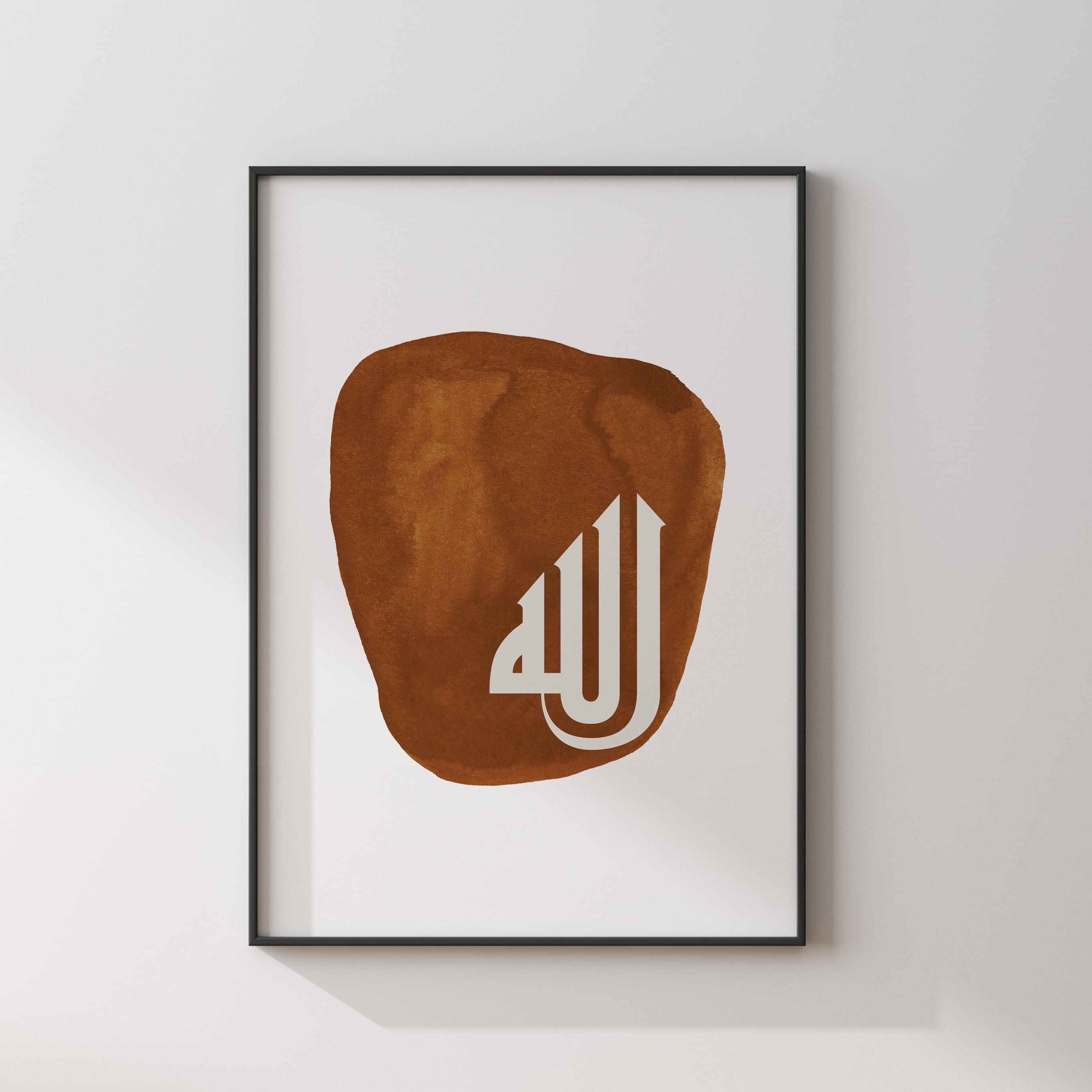 Brown & White Watercolour Allah Arabic Calligraphy Modern Abstract Islamic Wall Art Print