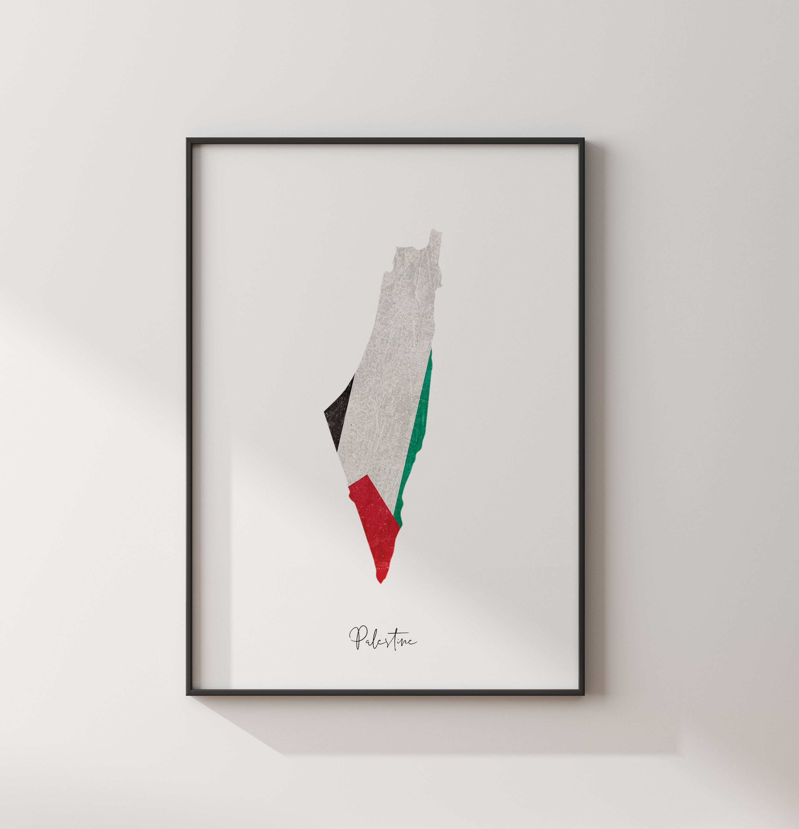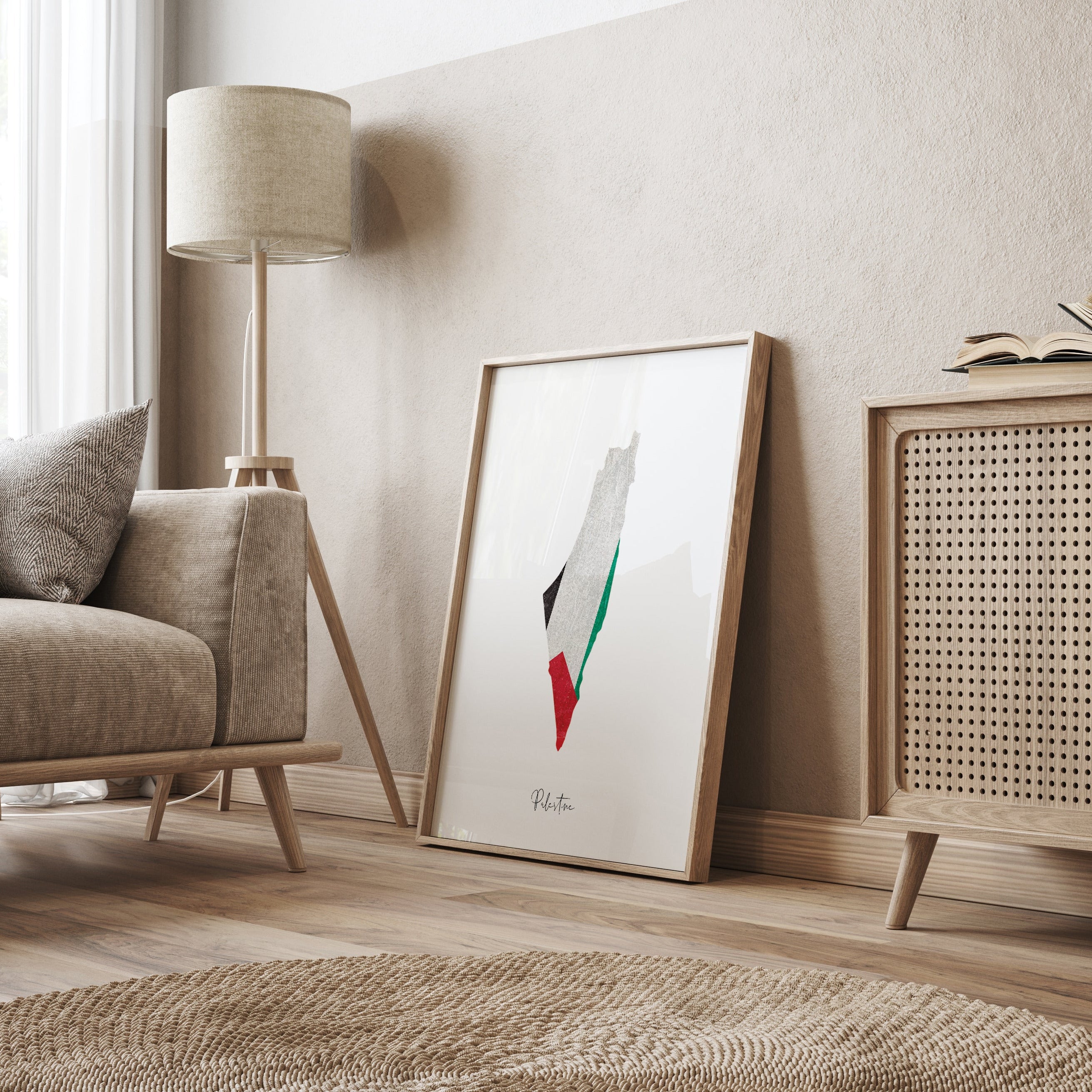 Black Green White & Red Palestine Flag Within Palestine Map Islamic Wall Art Islamic Art Print Free Palestine