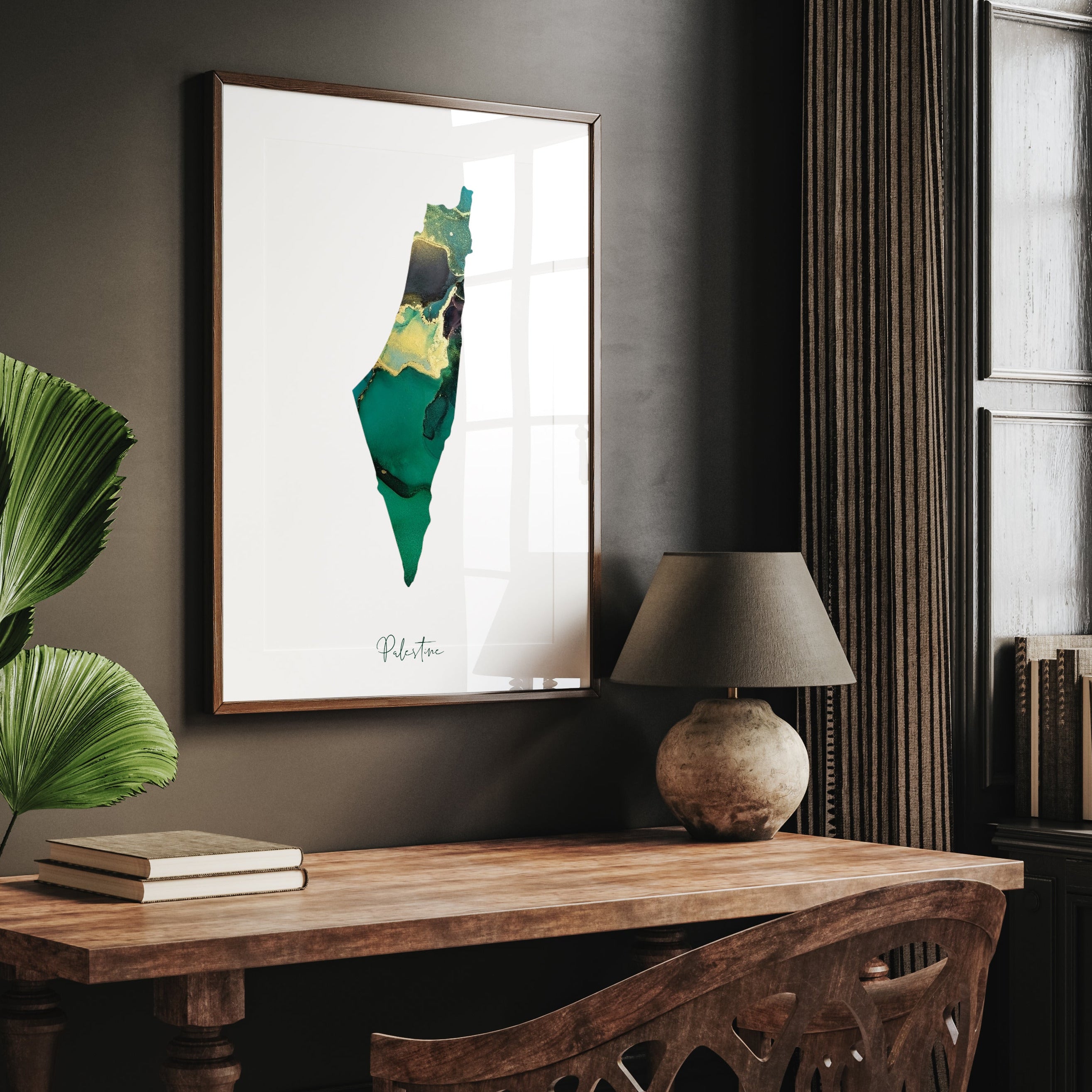 Emerald Green & Gold Alcohol Ink Splash Palestine Map Islamic Wall Art Islamic Art Print Free Palestine