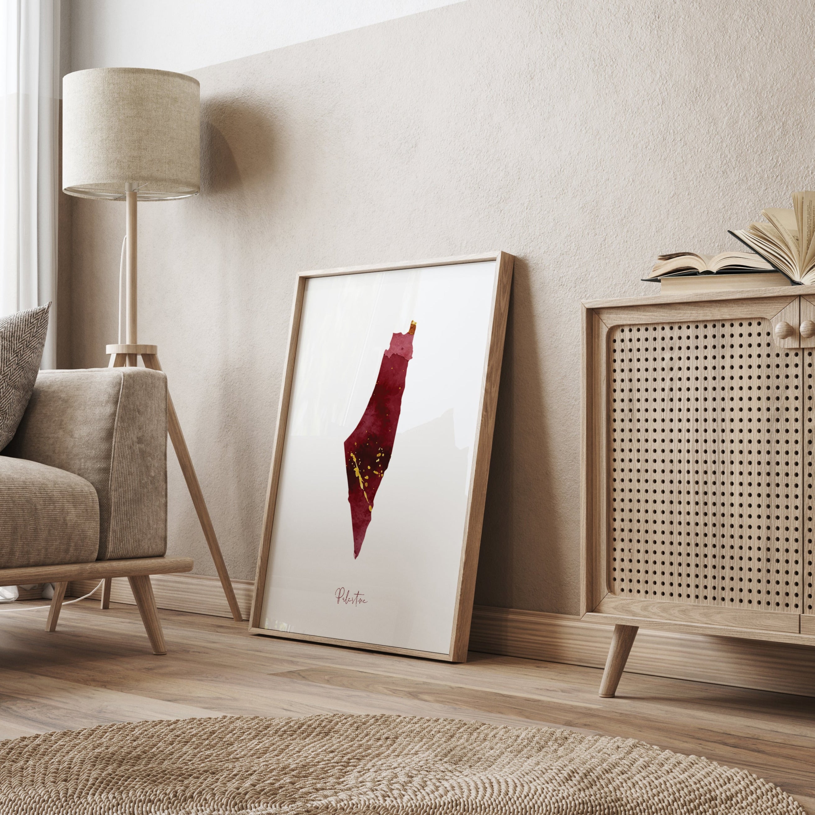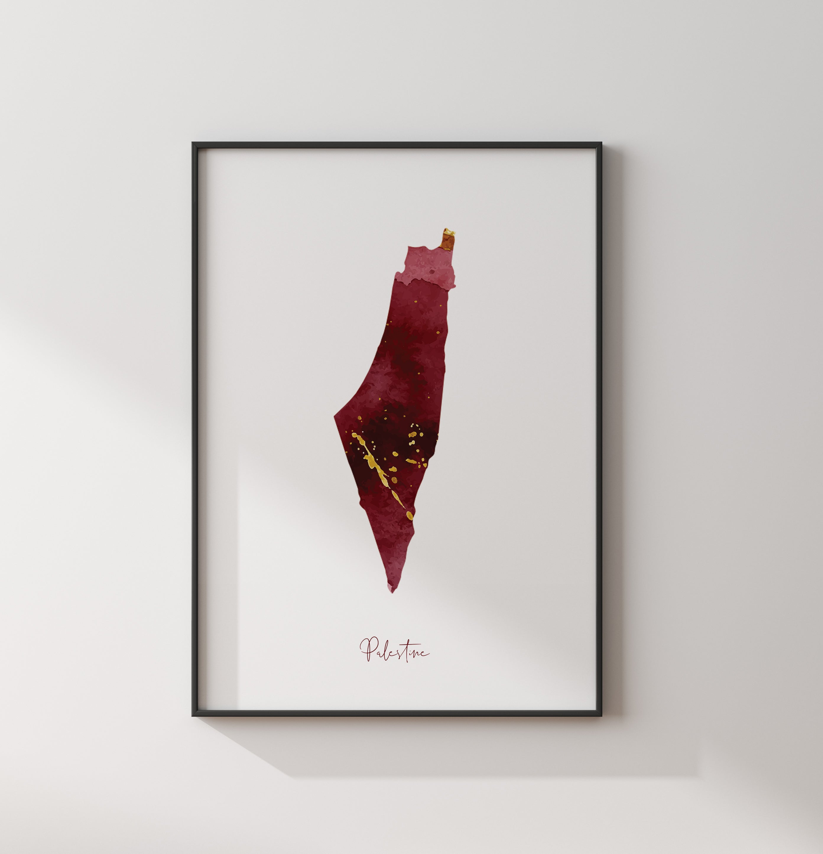 Maroon & Gold Alcohol Ink Palestine Map Islamic Wall Art Islamic Art Print Free Palestine