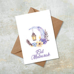 Purple Moon Floral Eid Mubarakl Islamic Eid Card