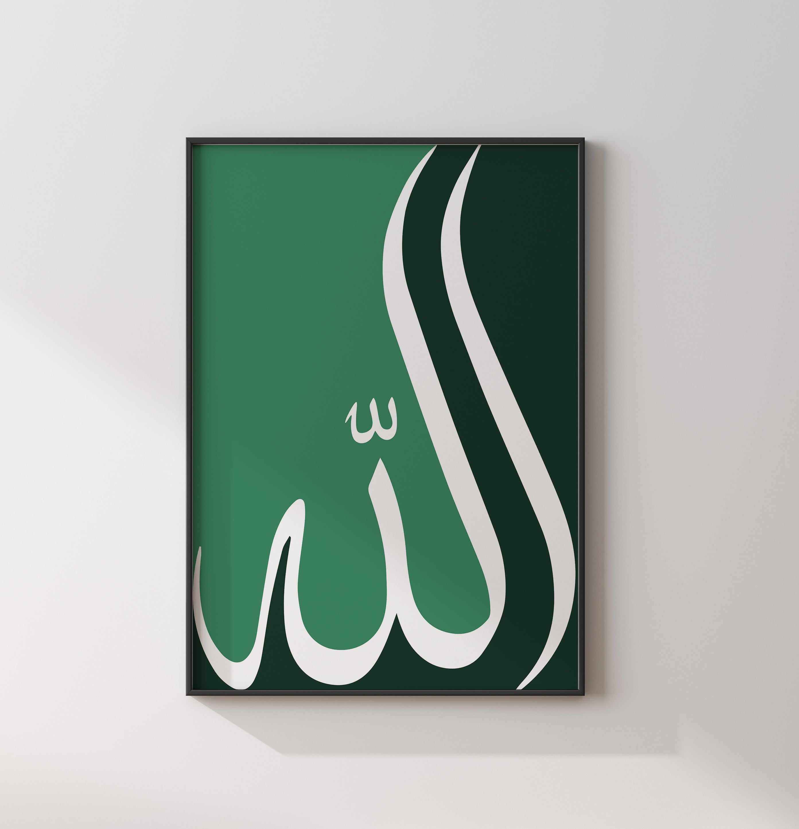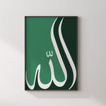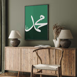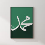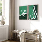 Set of 2 Simply Emerald Green Allah & Prophet Muhammad Arabic Calligraphy Islamic Wall Art Prints