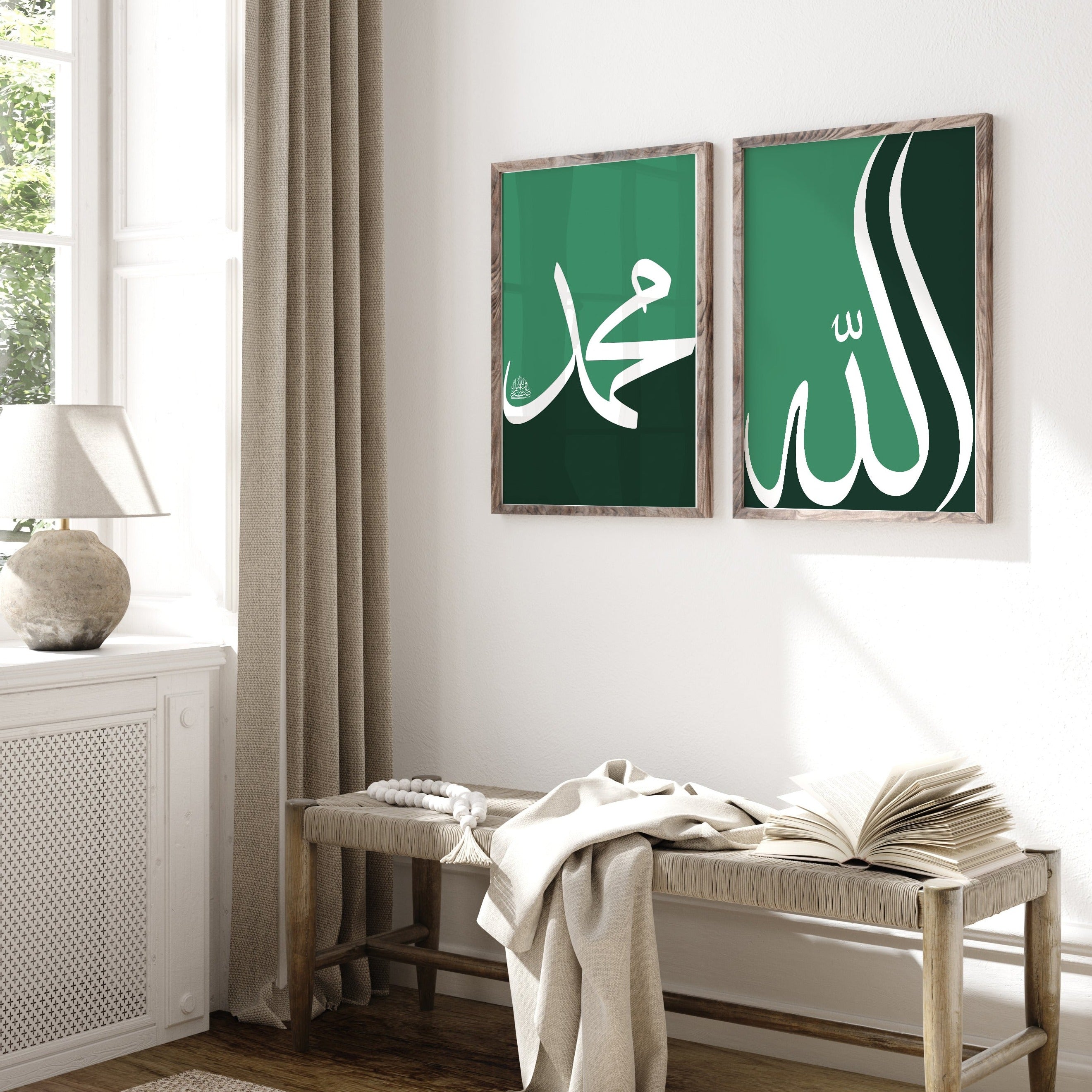 A unique set of 2 Allah & Muhammad Arabic calligraphy Islamic wall art prints.