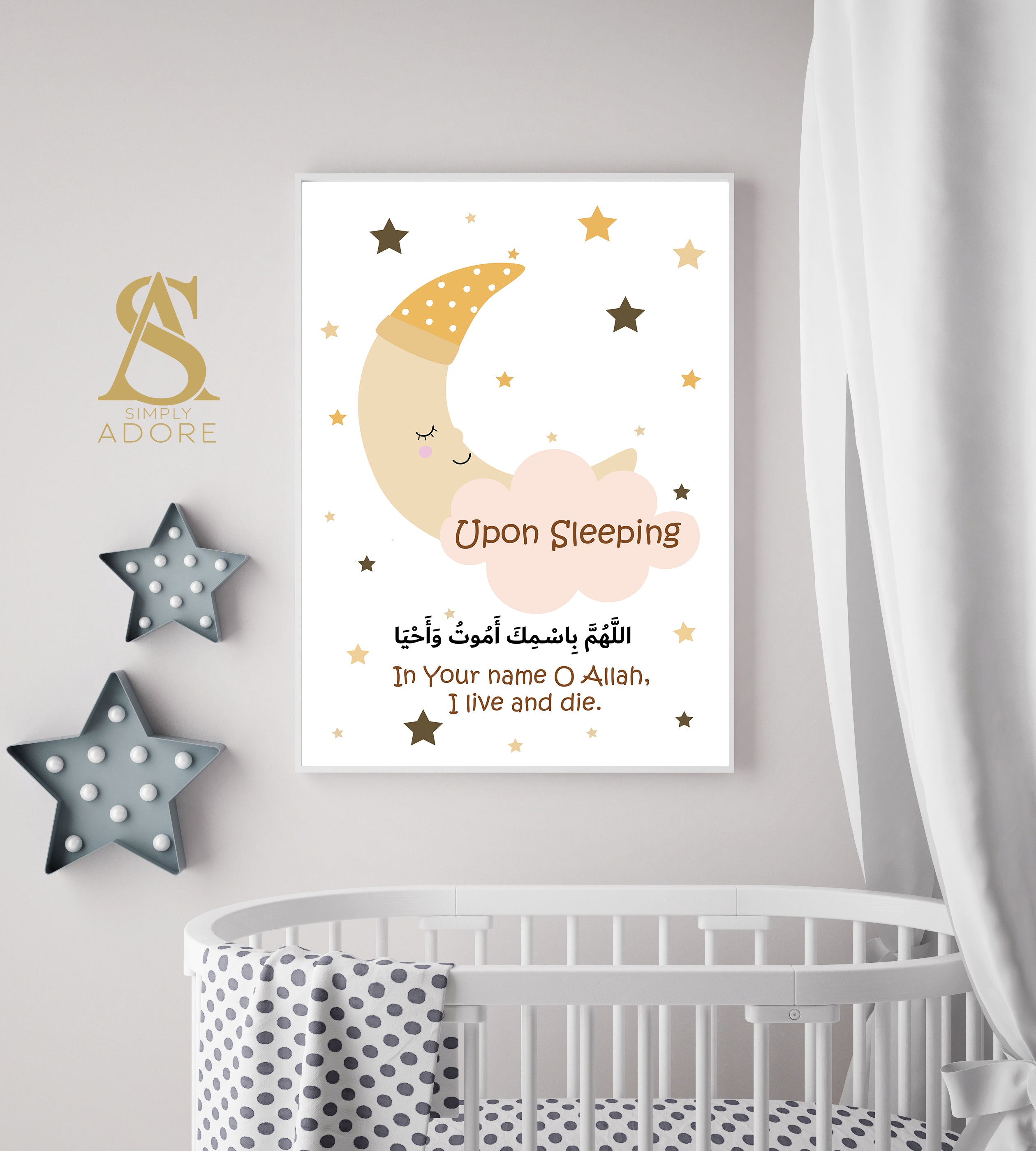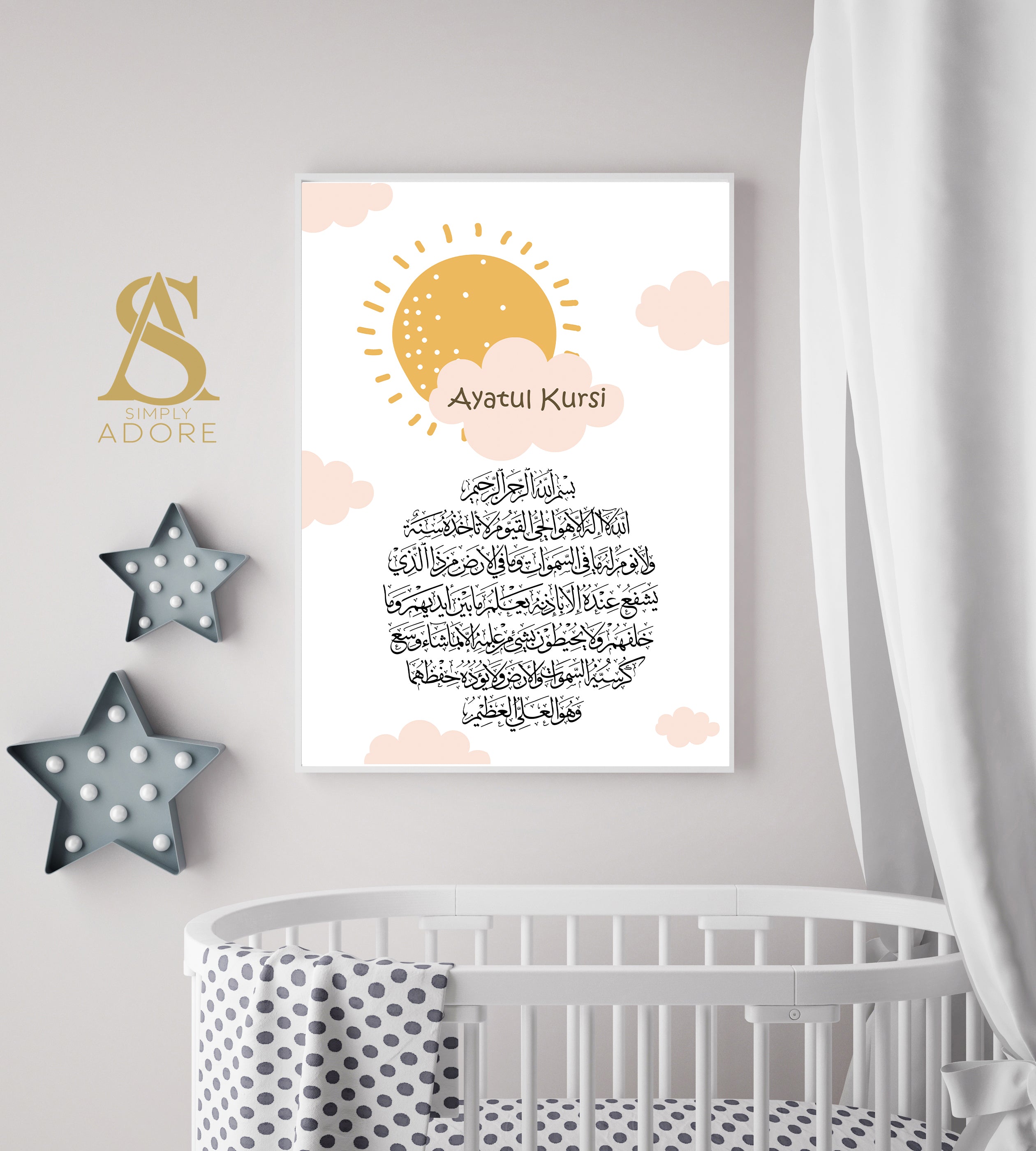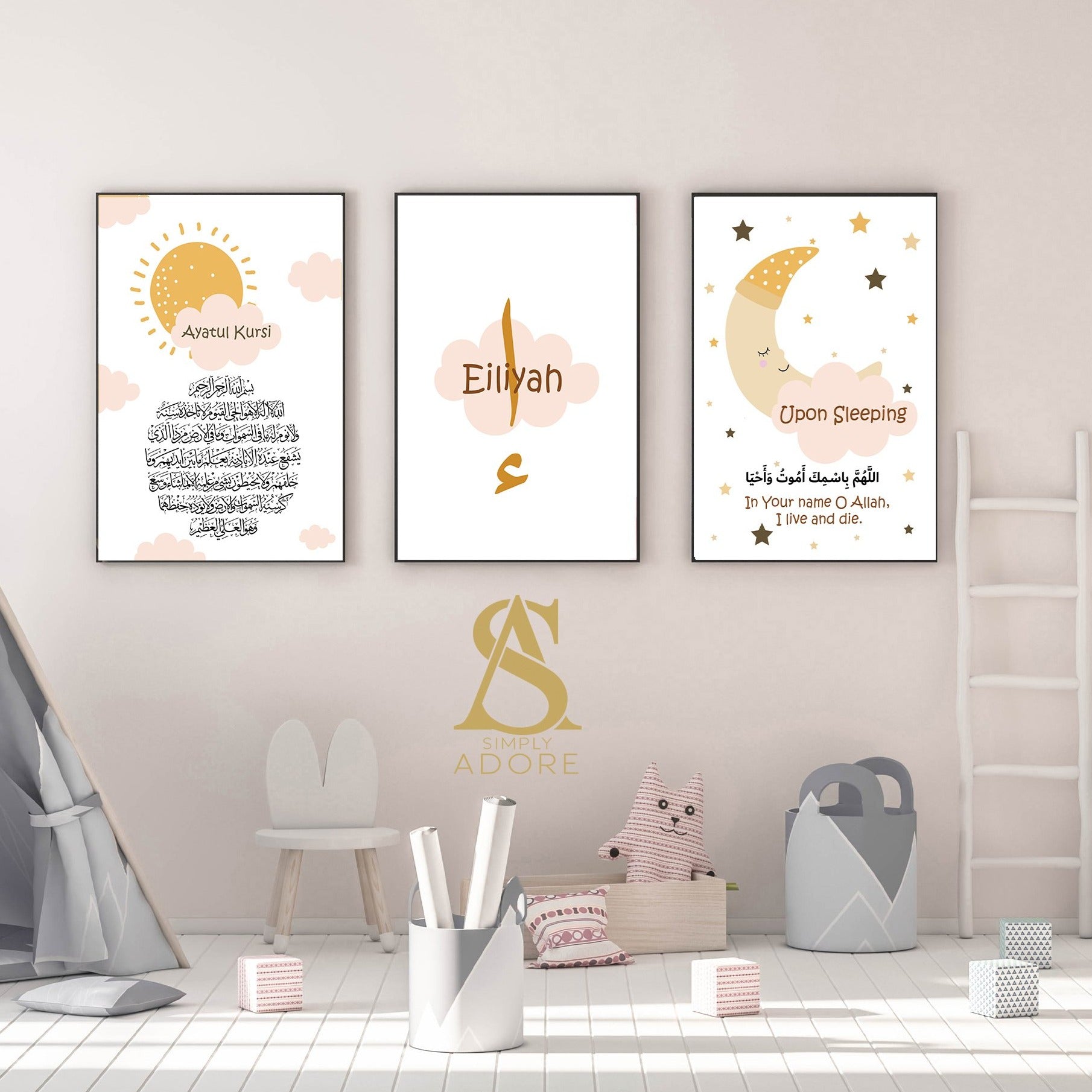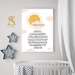 Set of 3 Personalised Ayatul Kursi & Night Dua Children's Islamic Wall Art Prints Sun Moon Cloud Kids Nursery Bedroom Gift Beige Black