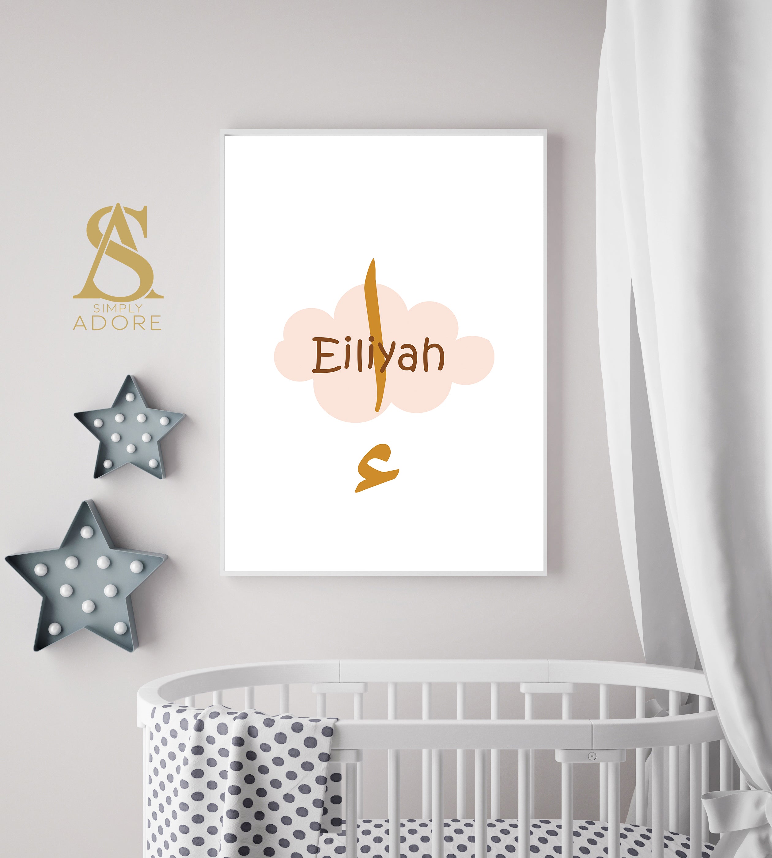 Once you have placed your order simply use the contact us form to let us know the name you would like on the print, please also include your order number.