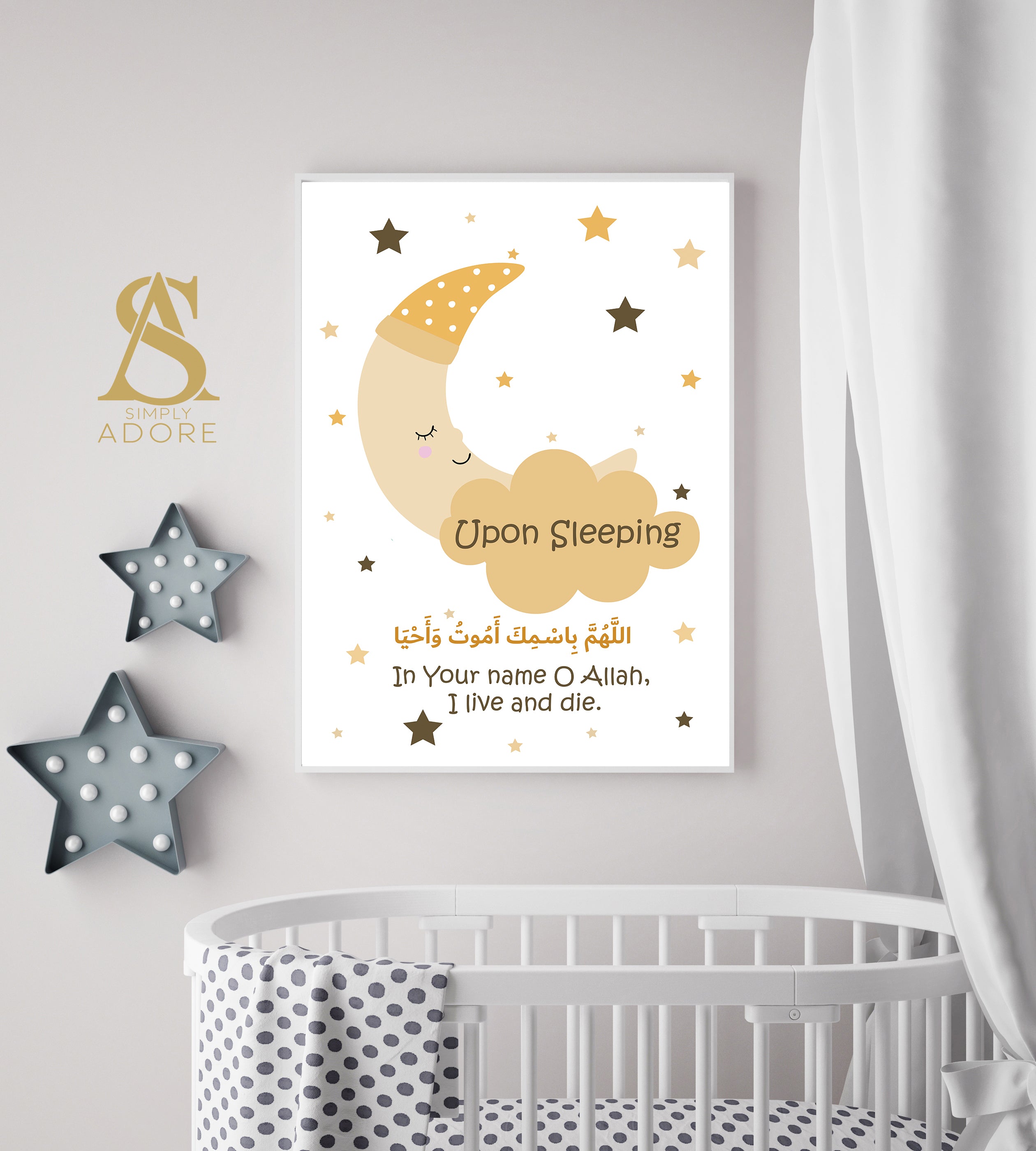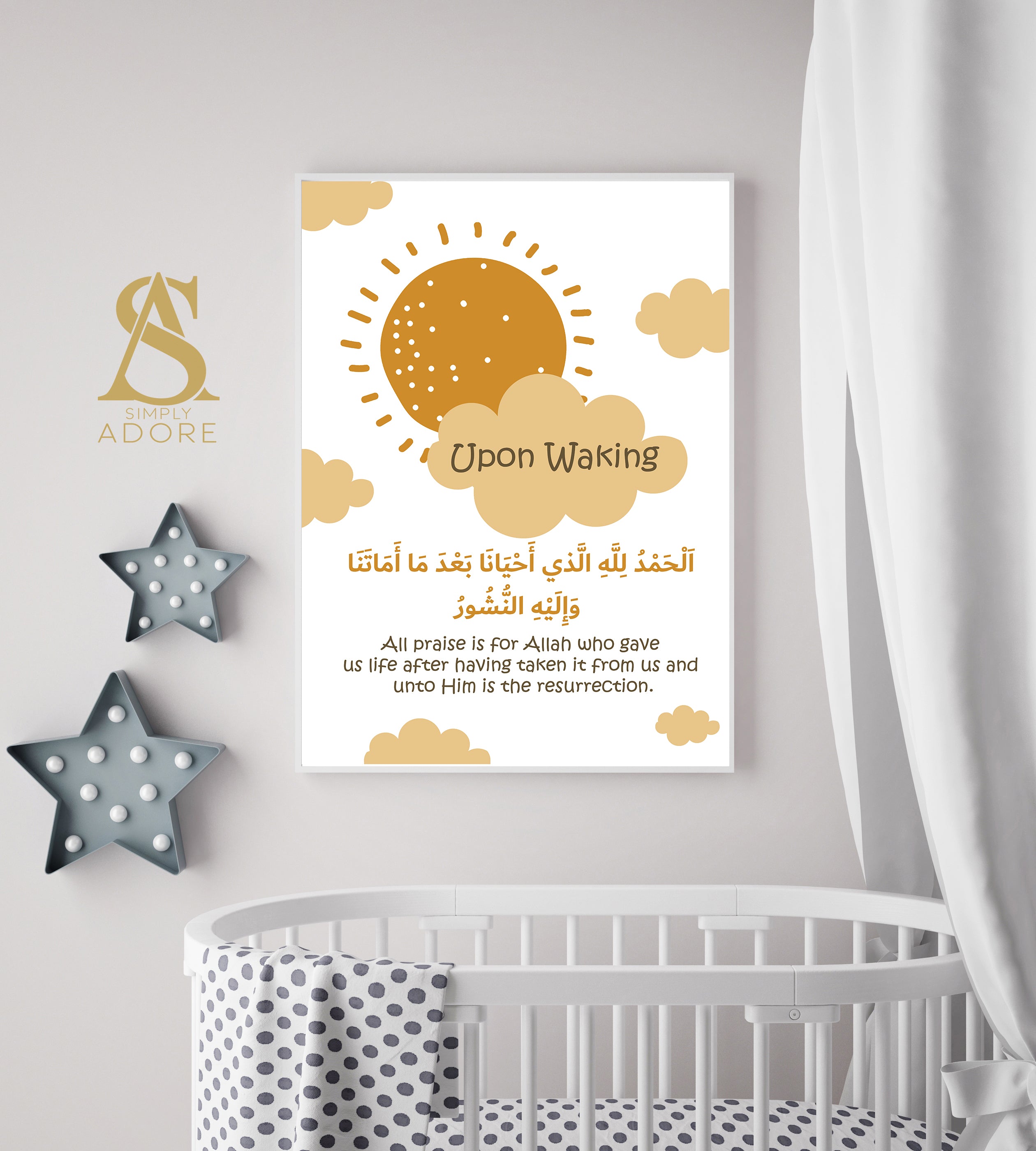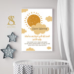 Set of 3 Personalised Morning & Night Dua Children's Islamic Wall Art Prints Sun Moon Cloud Kids Nursery Bedroom Gift Brown Burnt Orange Biege