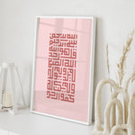 Shades of Pink Surah Ikhlaas Kufic Arabic Calligraphy Islamic Wall Art Print