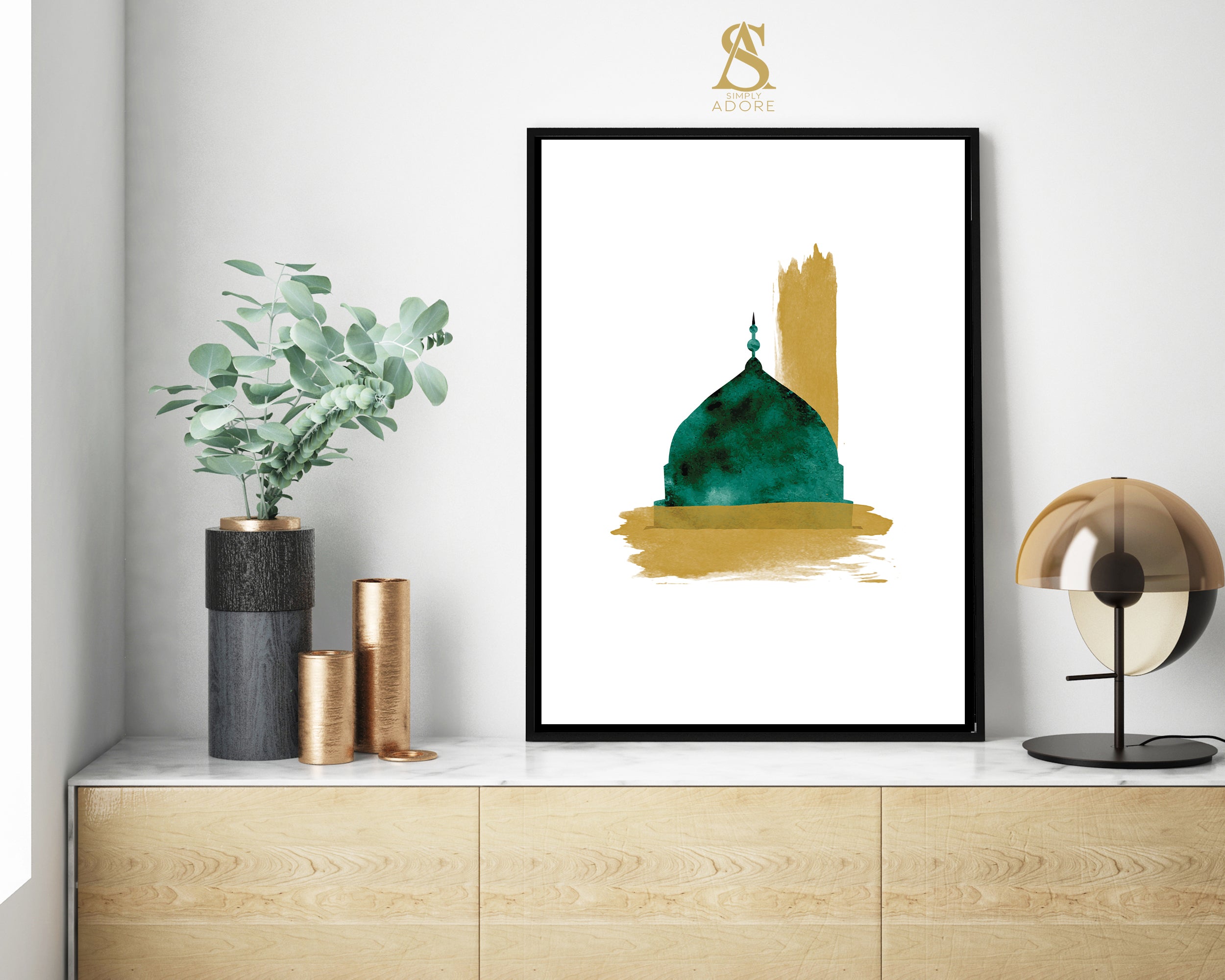 The Prophets Mosque Masjid Nabwi Green Digital Minimalistic Abstract Islamic Wall Art Print Madinah Medina Kids