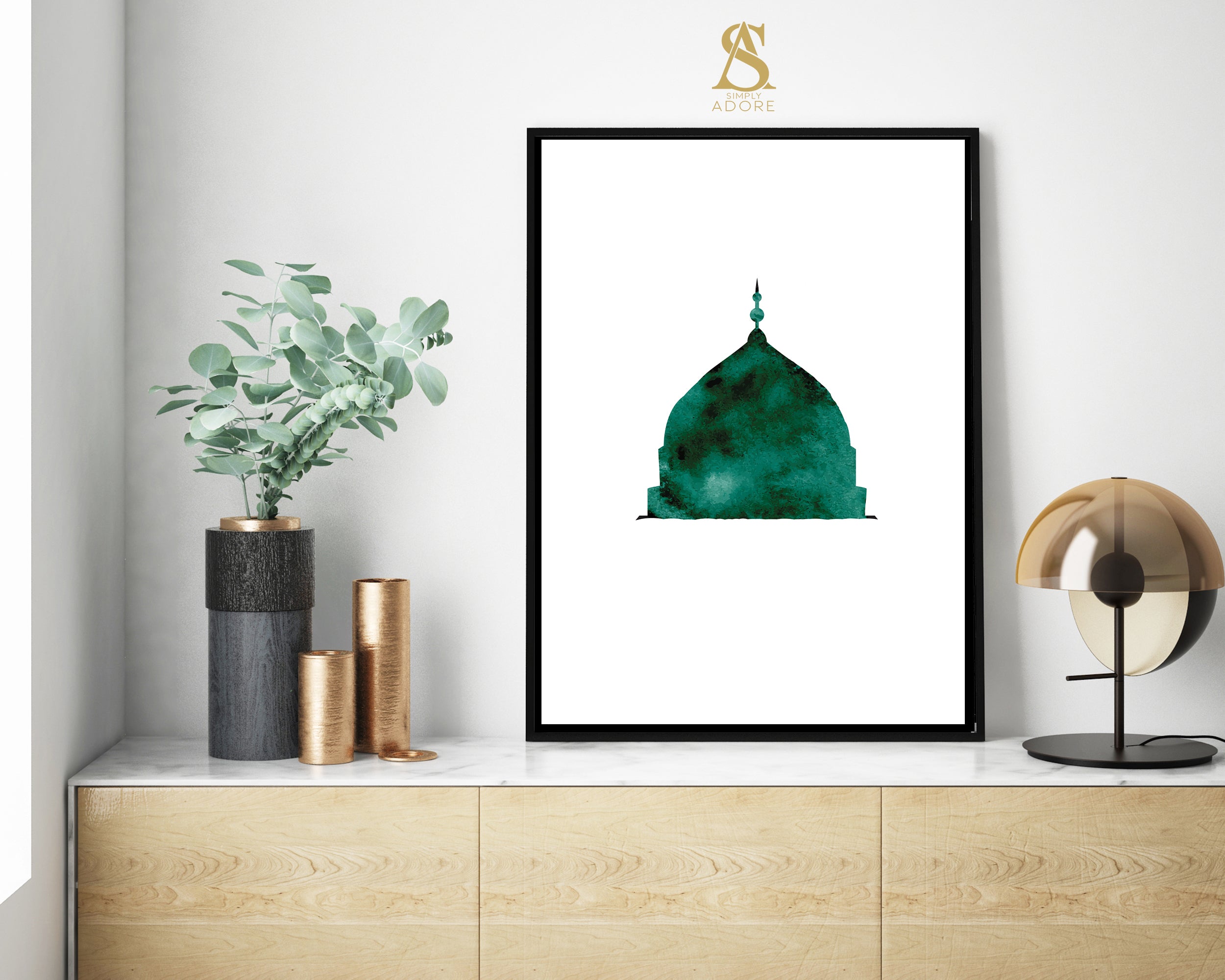 The Prophets Mosque Masjid Nabwi Green Digital Minimalistic Abstract Islamic Wall Art Print Madinah Medina Kids