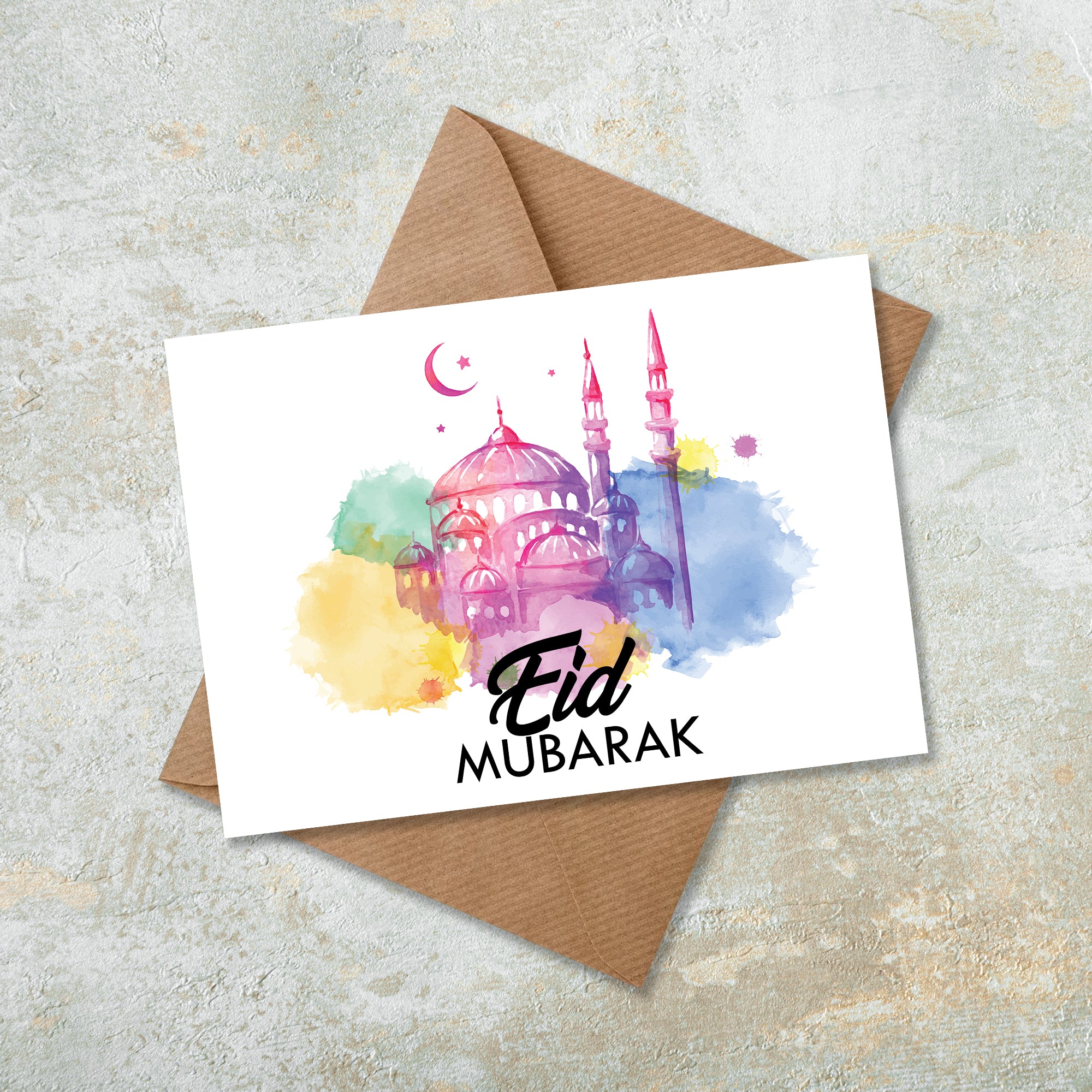 Watercolour Mosque Eid Mubarak Islamic Eid Card