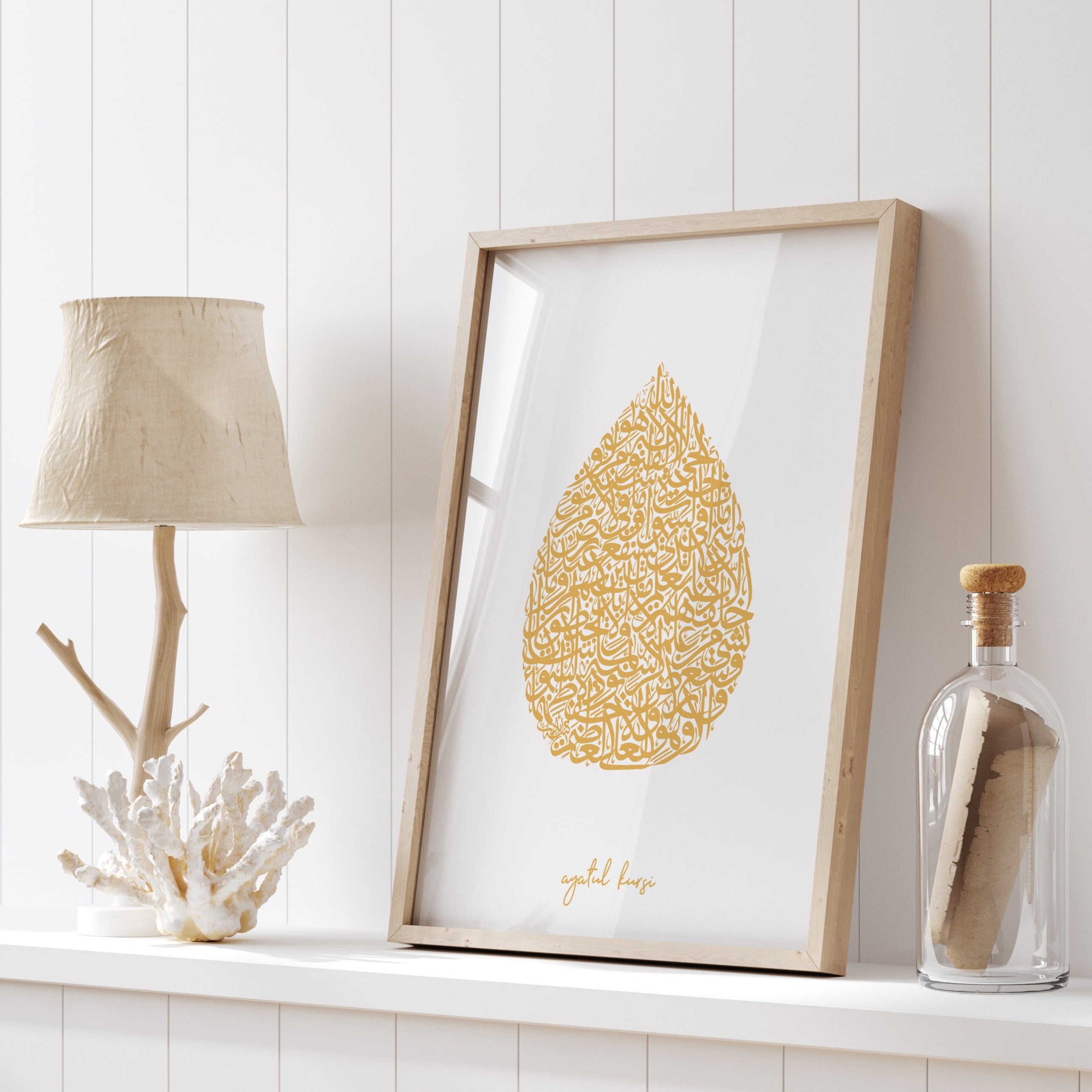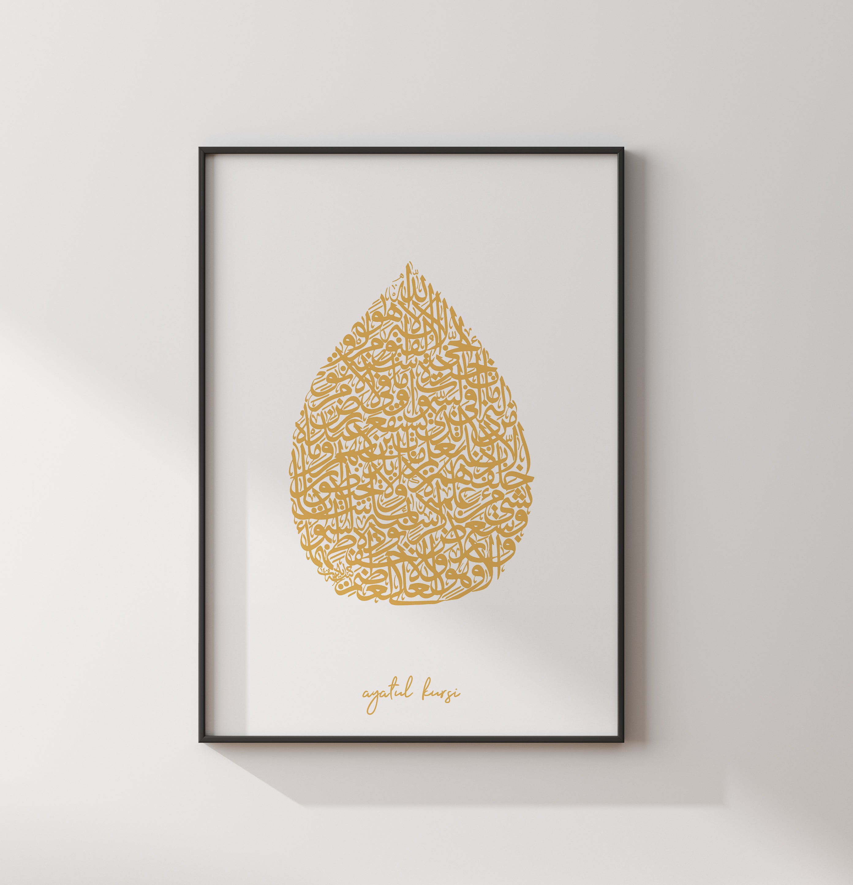 White & Gold Tear Drop Ayatul Kursi Minimalistic Abstract Modern Islamic Wall Art Print