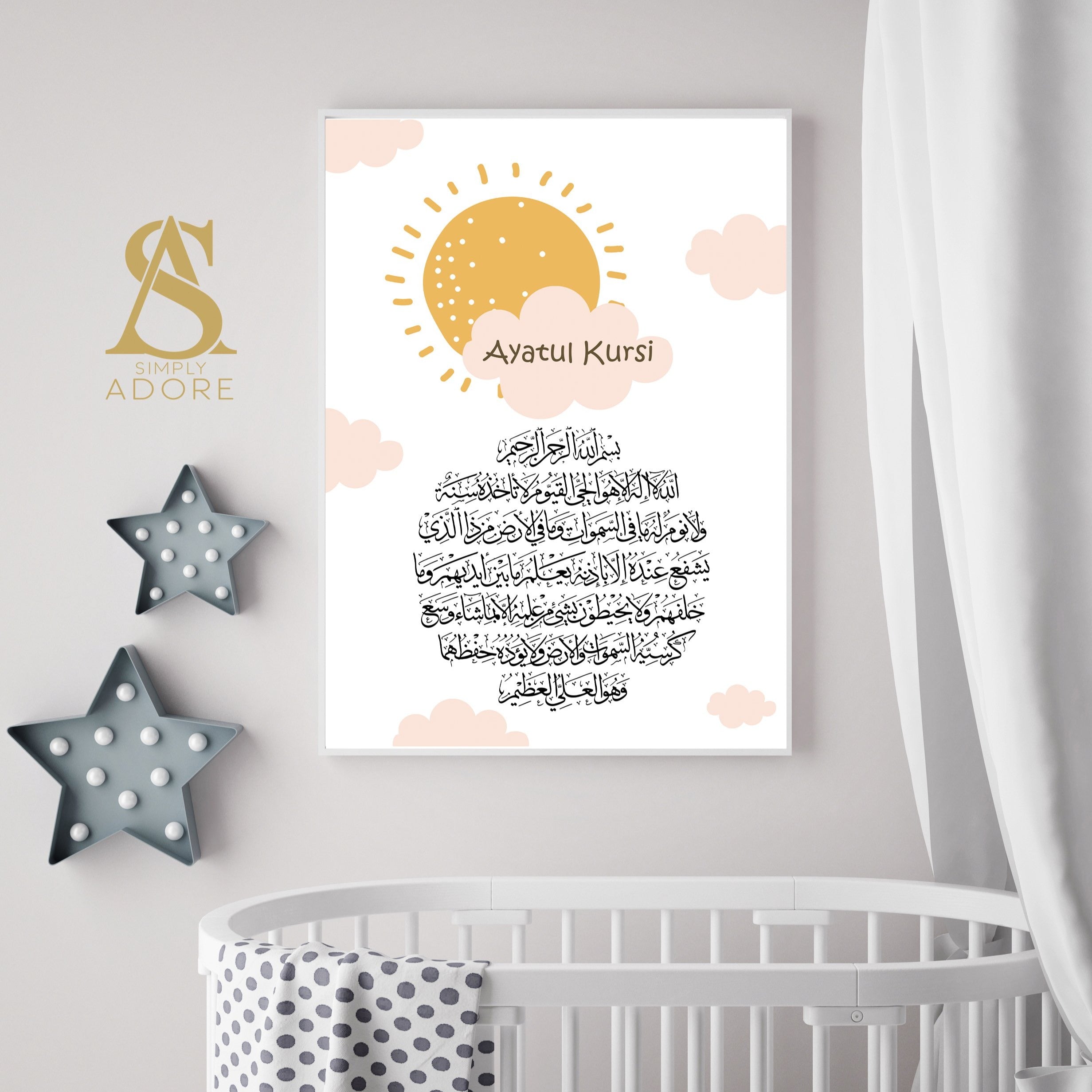 Ayatul Kursi Arabic Sun & Clouds Brown Beige & Black Children's Islamic Wall Art Print Kids Bedroom Nursery Girls Boys Room Kids Islamic Print
