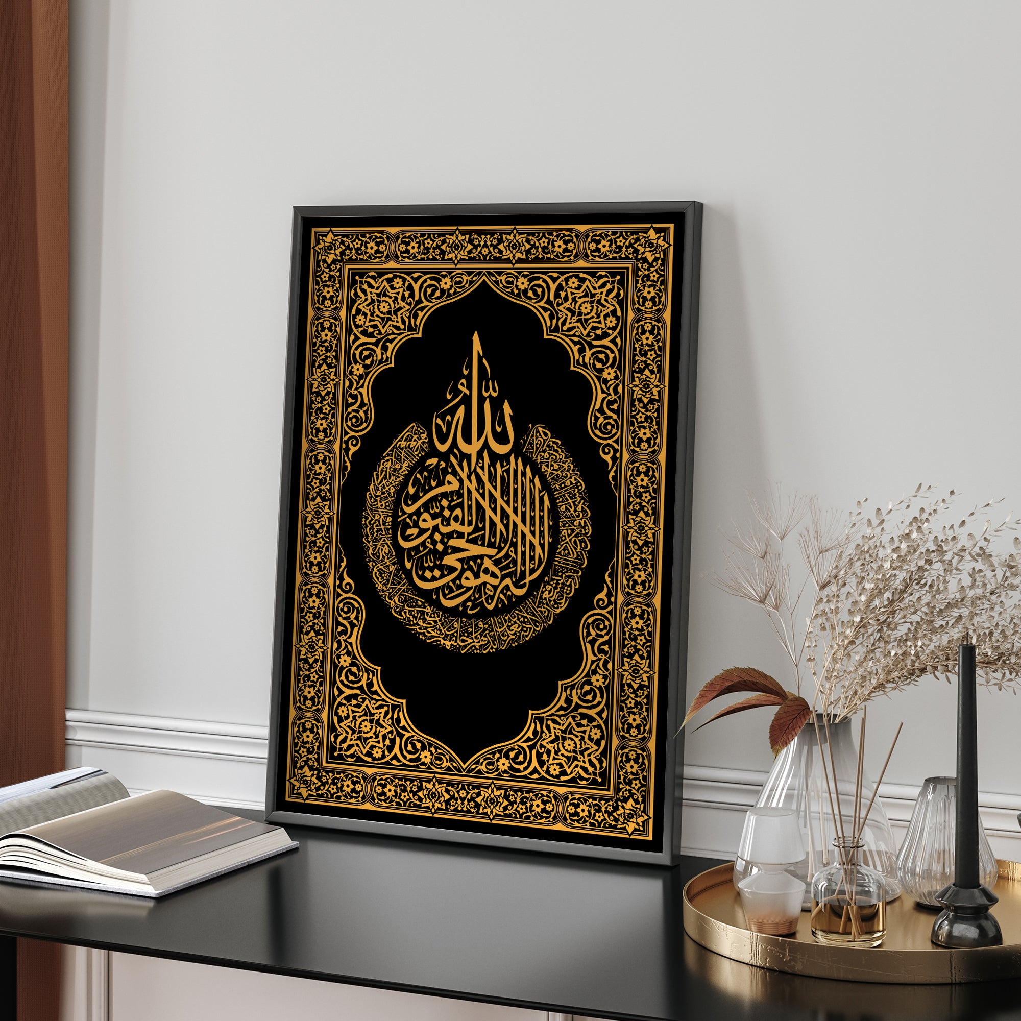 Black & Gold Ayatul Kursi | Islamic Wall Art Print (1000)