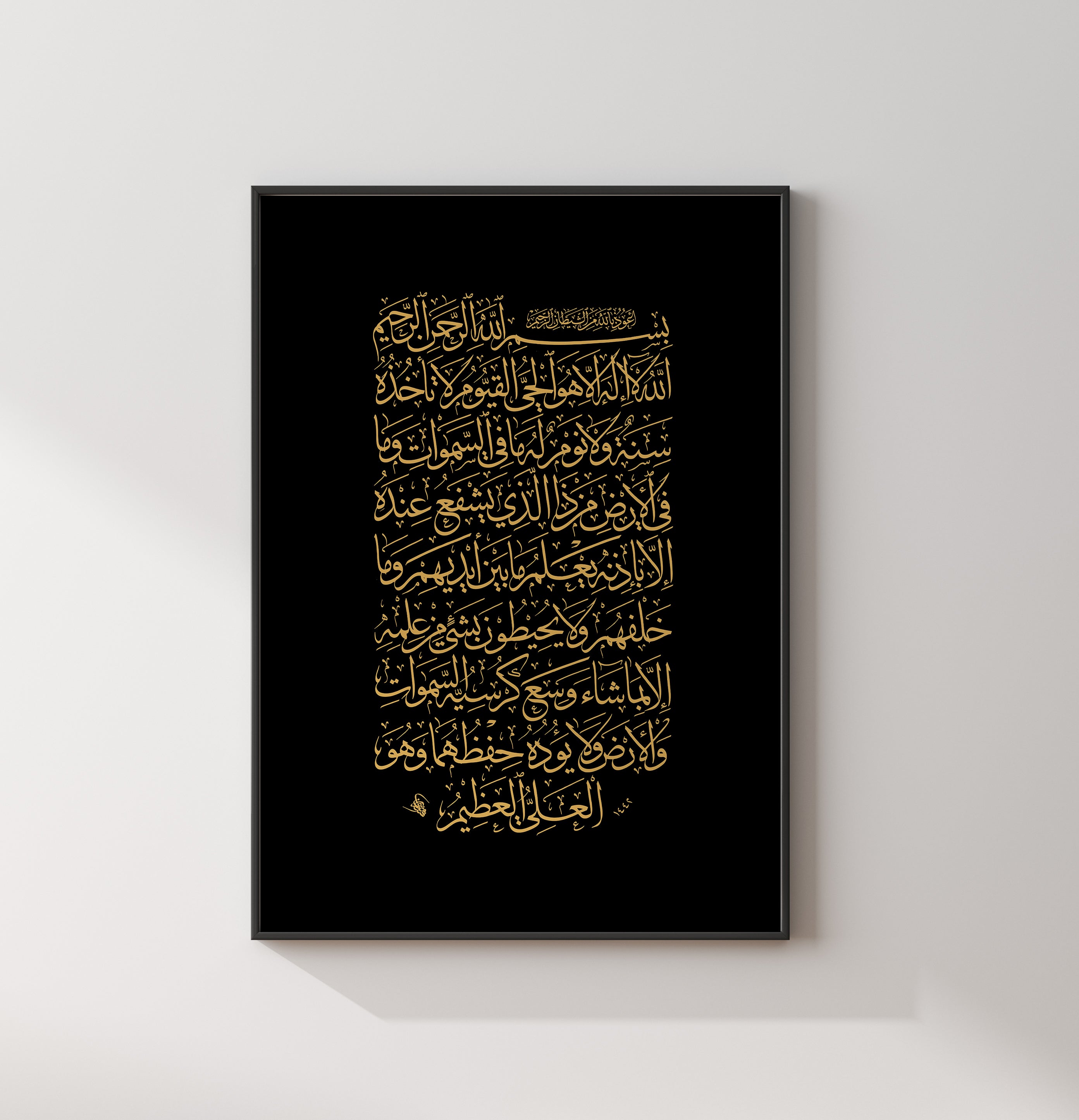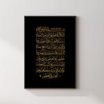 Black & Gold Ayatul Kursi Luxury Islamic Wall Art Print Arabic Calligraphy Minimalistic Protection Surah's Vintage Calligraphy Quran Verses