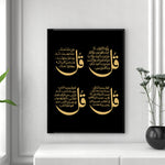 Black & Gold 4 Qul's Luxury Islamic Wall Art Print Arabic Calligraphy Minimalistic Protection Surah's Vintage Calligraphy Quran Verses