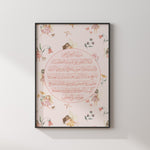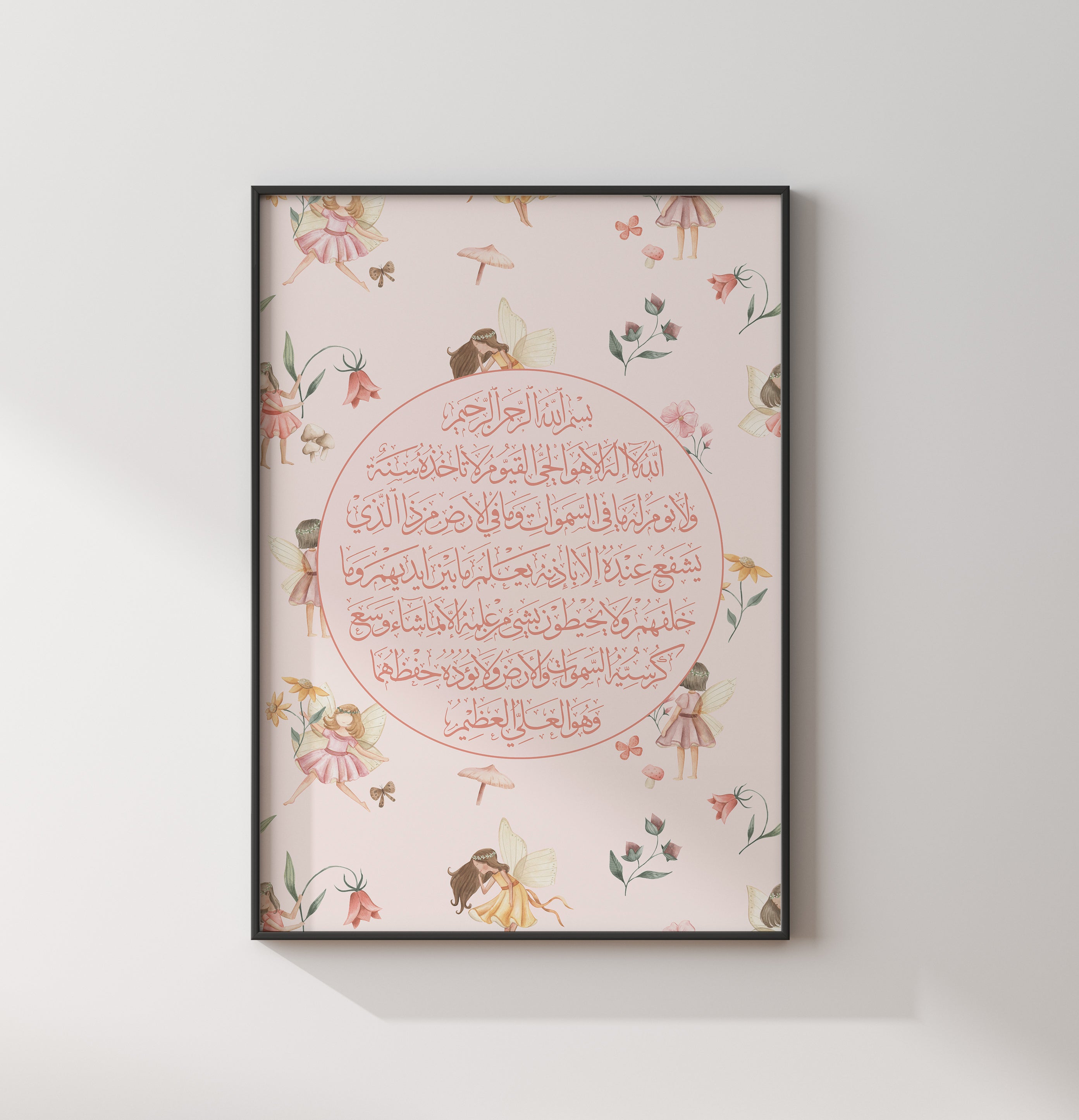 Coral and Grey Fairy Ayatul Kursi Arabic Calligraphy Modern Islamic Children's Wall Art Print