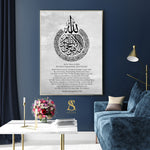 Islamic Print In Grey / Aytul Kursi Quran Verse Ayah Arabic Calligraphy Islamic Wall Art Print Floral English Translation