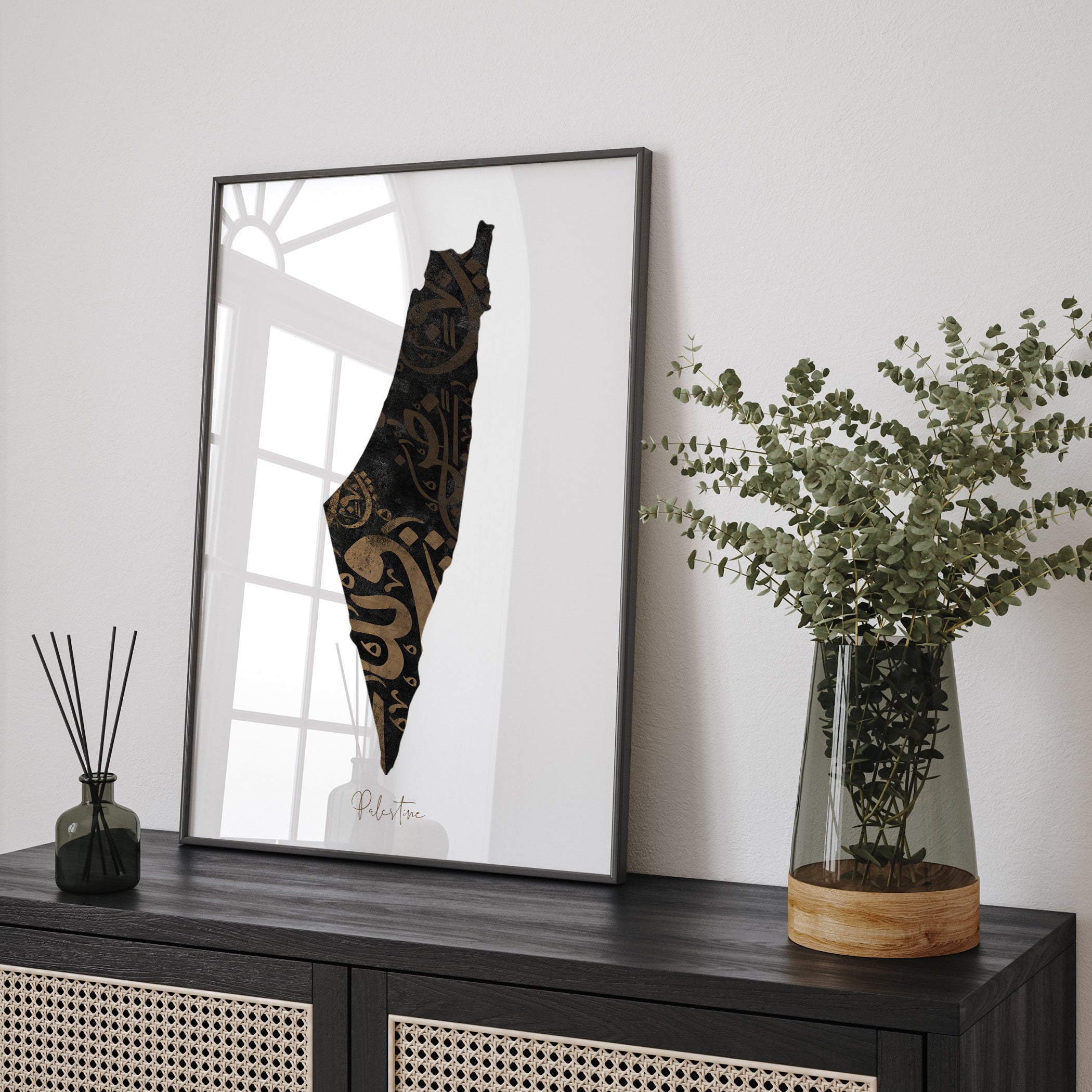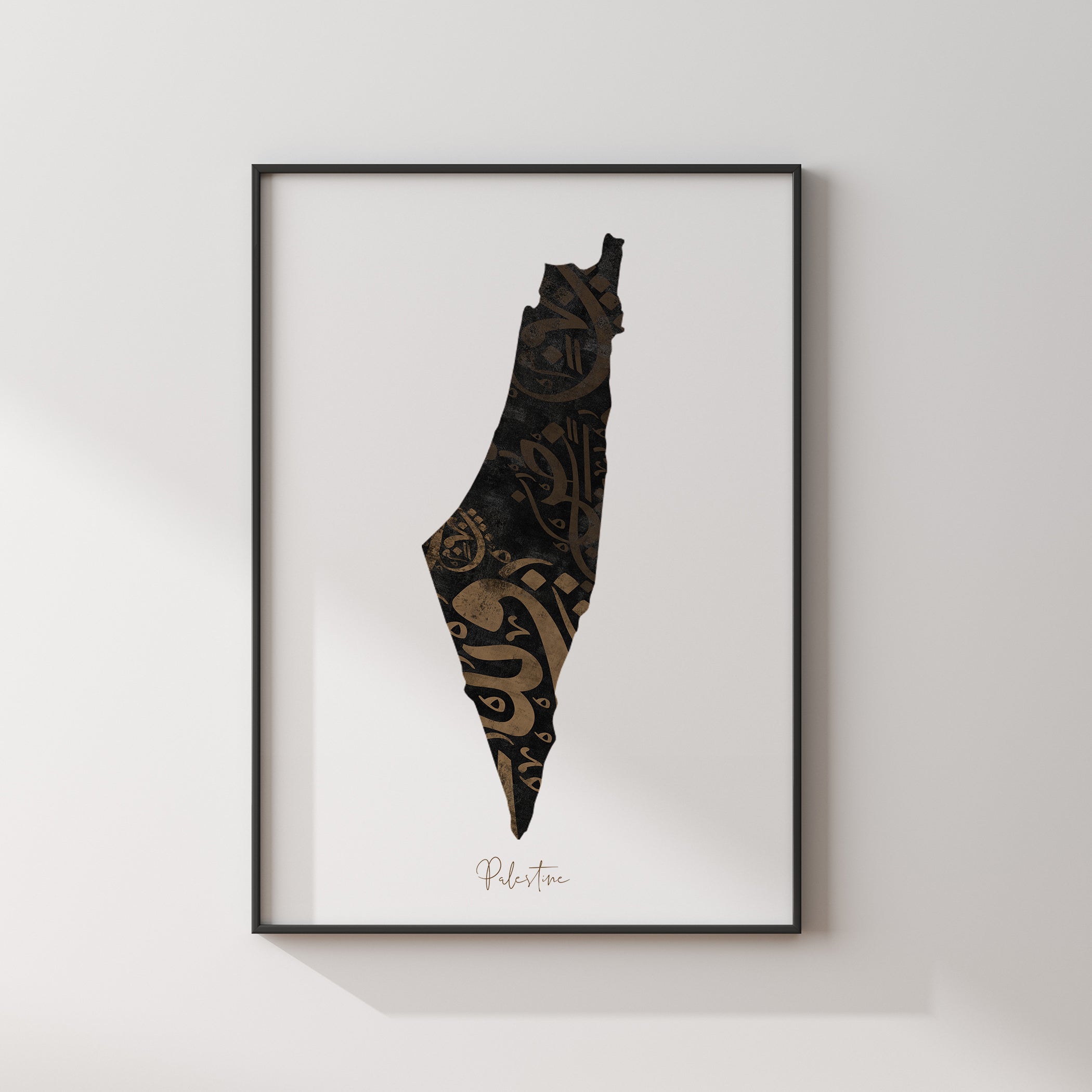 Black & Gold Arabic Calligraphy Palestine Map Islamic Wall Art Islamic Art Print Free Palestine