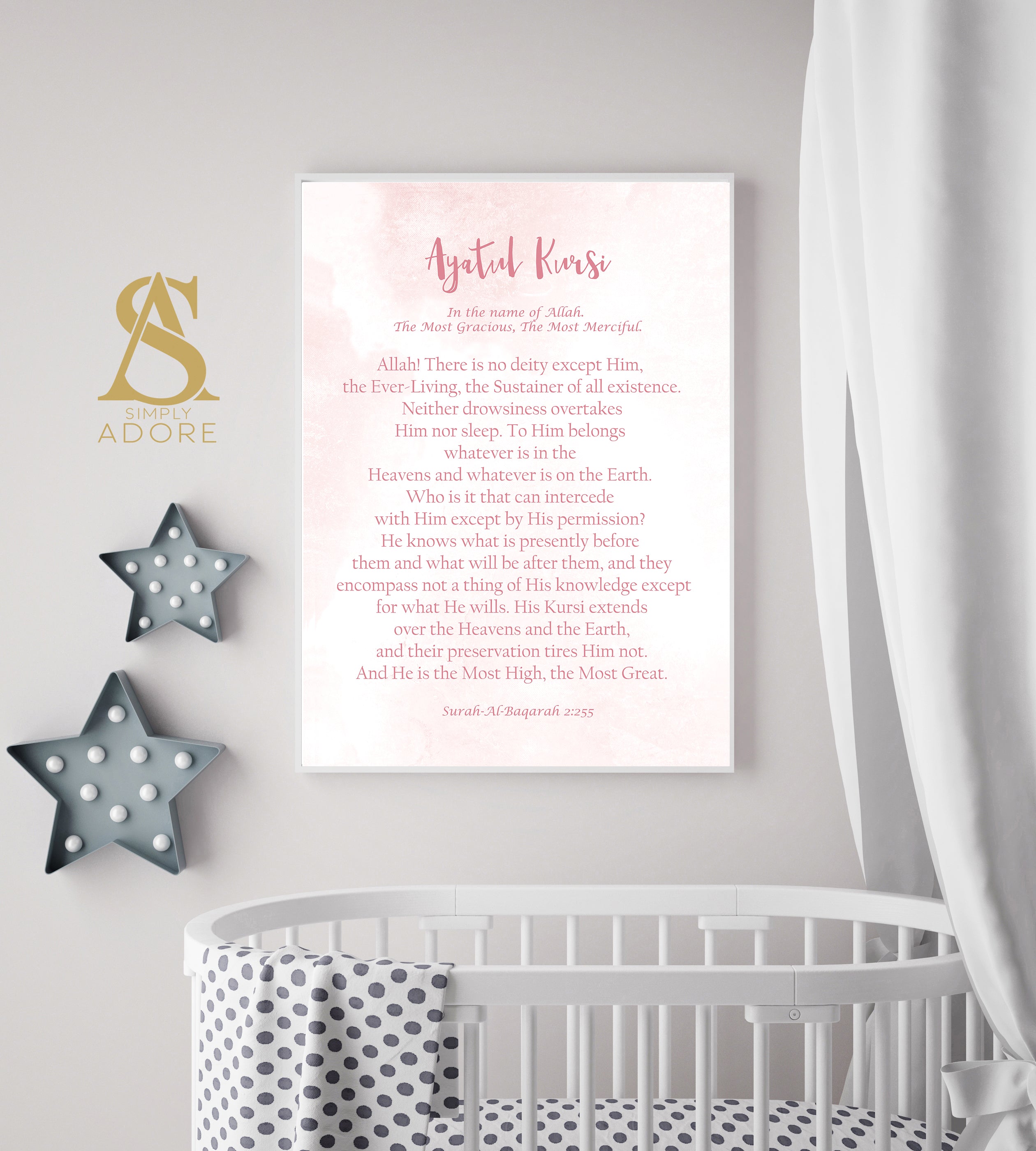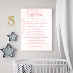 Pink Watercolour Ayatul Kursi English Translation Children's Islamic Wall Art Print Kids Bedroom Nursery Girls Gift Calligraphy