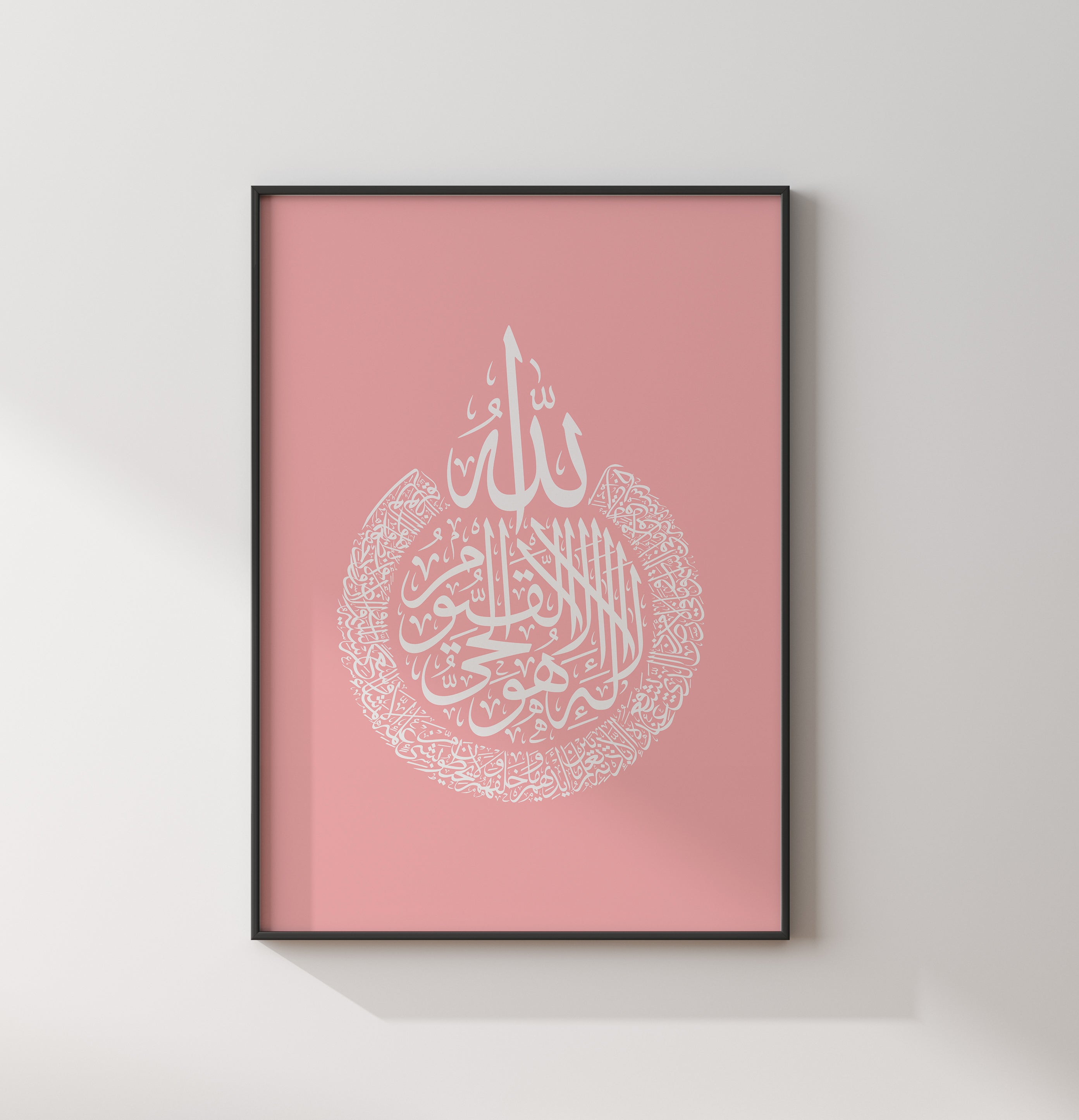 Pink & White Ayatul Kursi Islamic Wall Art Print Prints