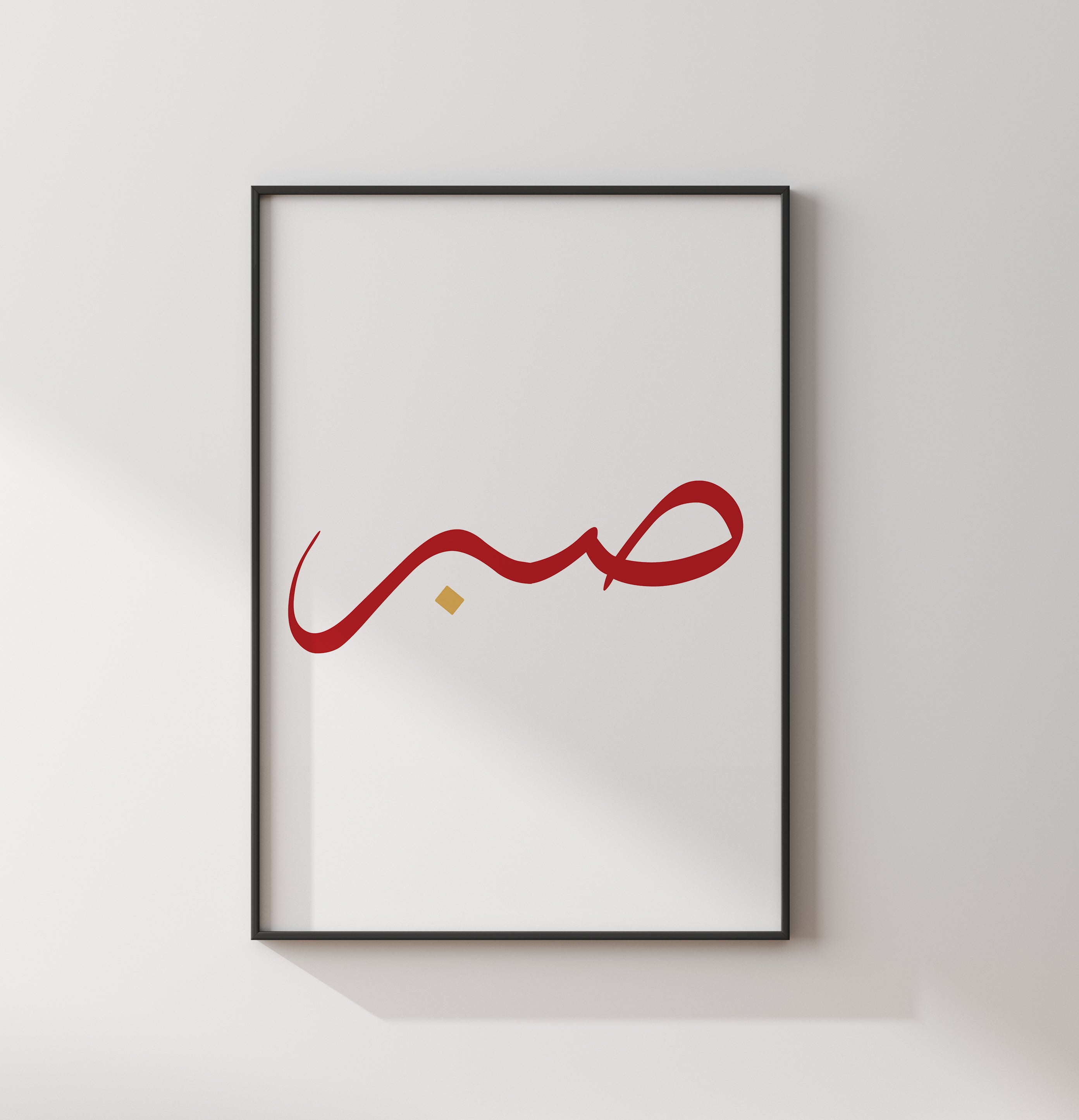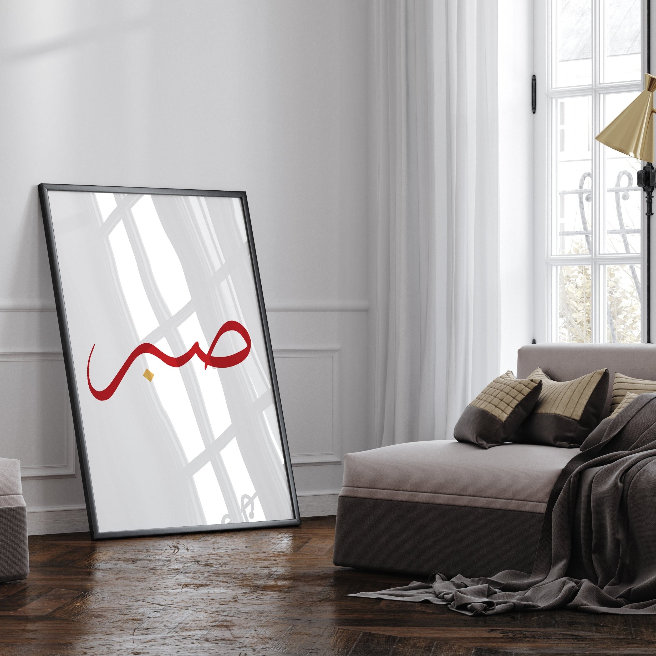 Simply Maroon & Gold Sabr Arabic Calligraphy Modern Islamic Wall Art Print