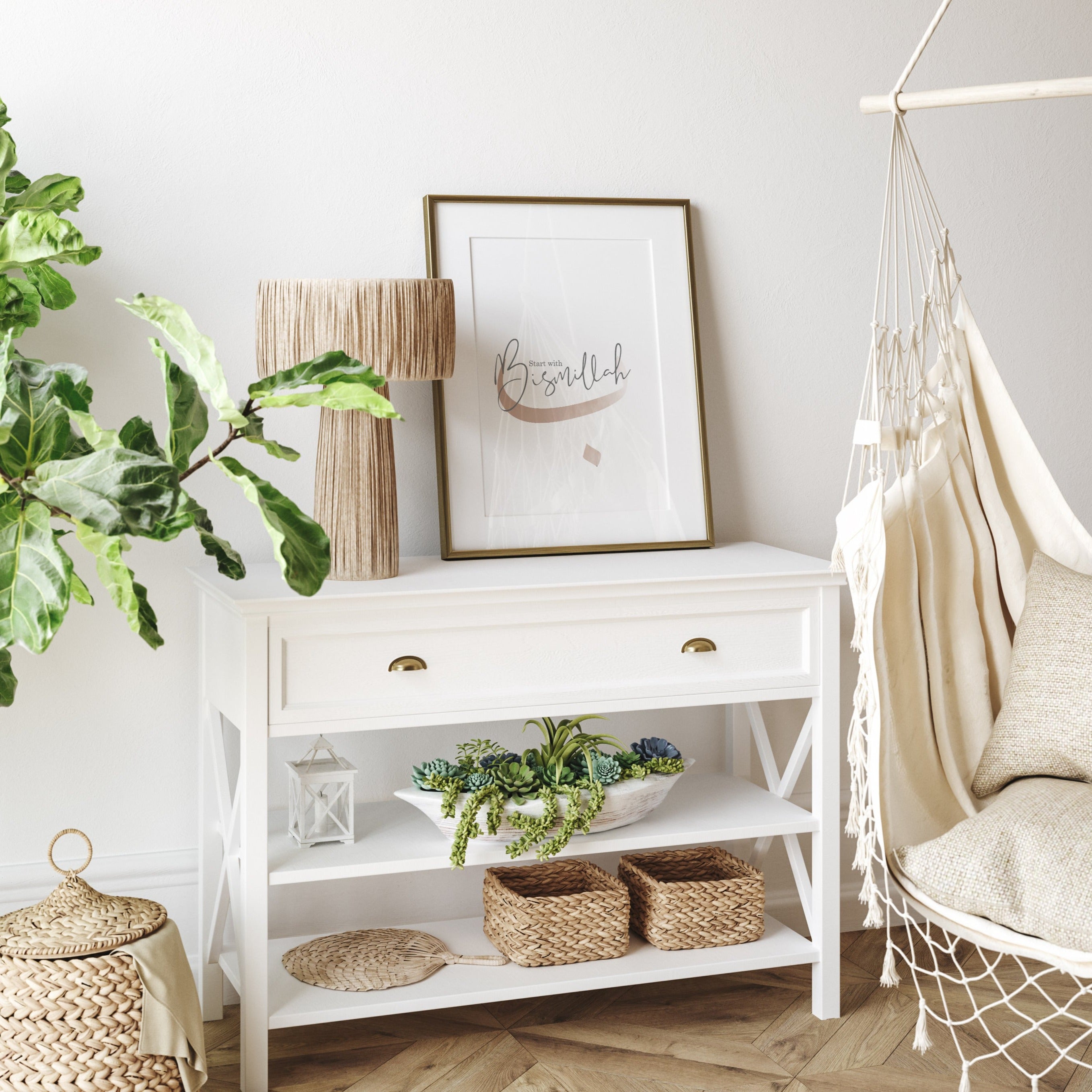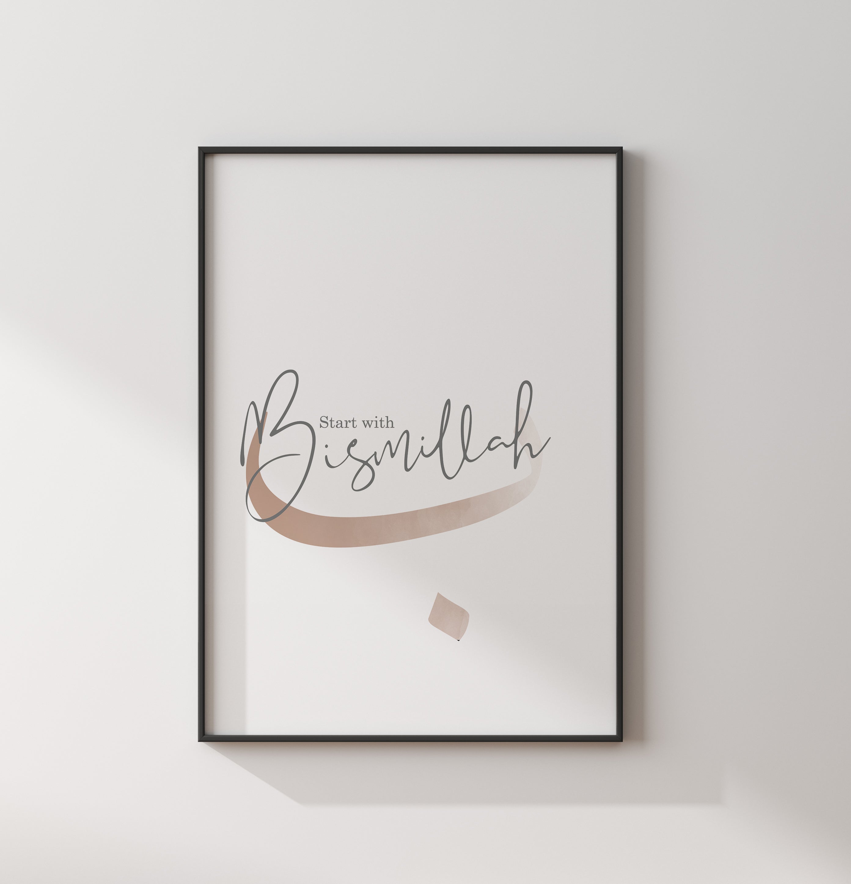 Gold And Beige Start With Bismillah Letter Ba Abstract Islamic Wall Art Print
